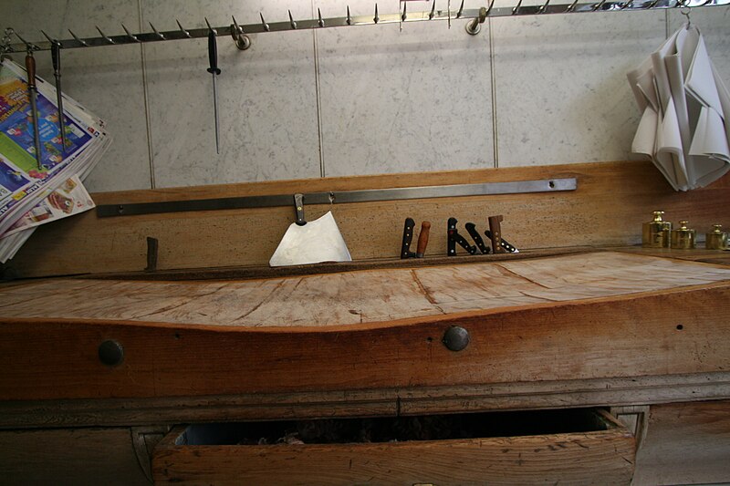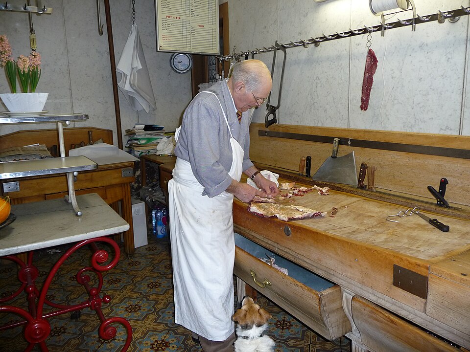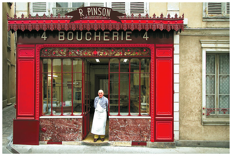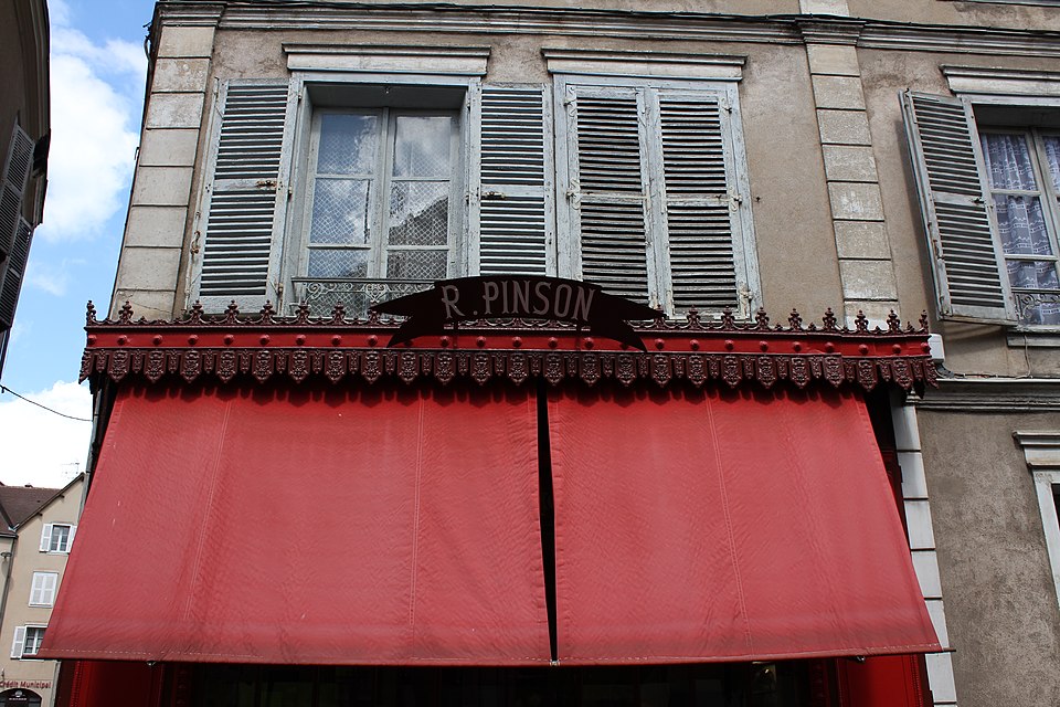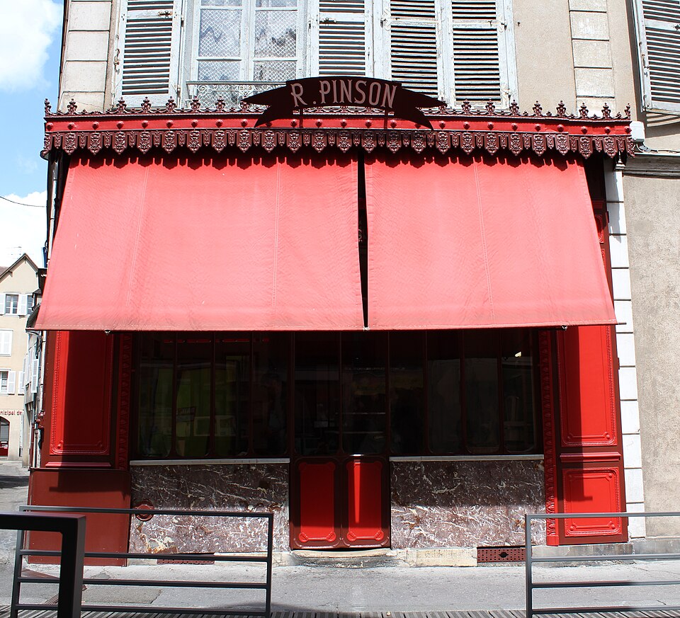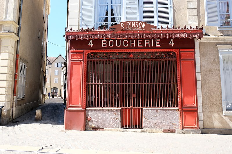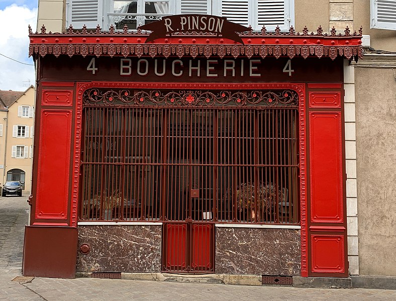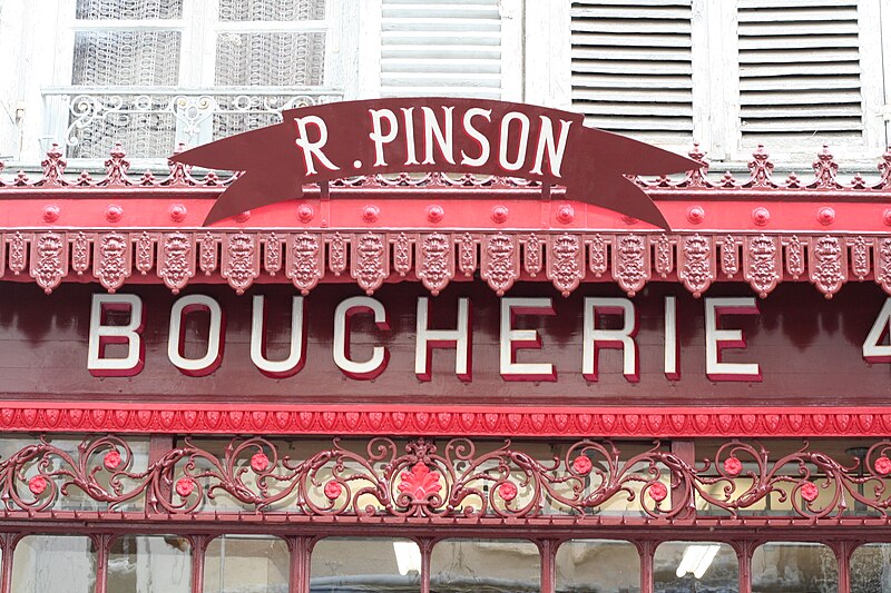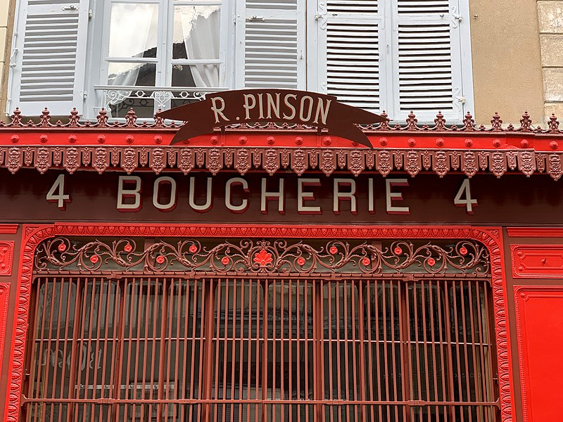 La boucherie Pinson, ancienne boucherie installée à Chartres depuis 1892, se situe au 4 rue du Soleil-d'Or (devanture) et au 2 rue Henri-Garnier. Elle a conservé ses éléments caractéristiques : enseigne, marquise légèrement saillante, décor en zinc et tôle peinte, marbres de couleurs et mobilier de métier. La devanture, due à Maréchal, se compose d'un soubassement en marbre rouge, d'une vitrine divisée par des petits-fers et d'un entablement. L'imposte présente des rinceaux ajourés en fonte séparés des glaces par une traverse ornée de crocs de boucher. L'entablement est formé d'un panneau de bois portant le texte « 4 boucherie 4 » et surmonté d'un lambrequin en fonte qui protège un store déroulant manœuvré par un système à engrenages. En couronnement se trouve un phylactère inscrit « R. Pinson ». Aux extrémités latérales, des caissons en tôle renferment les contrevents repliés en feuilles ; ces caissons, divisés en panneaux, reprennent la verticalité de la vitrine avec un panneau d'appui, une cimaise, un panneau de hauteur et un panneau de couronnement évoquant un chapiteau au niveau de l'imposte, orné en son centre d'un croc de boucher. La porte, située au centre de la devanture, interrompt le soubassement. L'ensemble est peint dans un camaïeu de rouges — sang-de-bœuf et cardinal — couleurs traditionnelles du métier. Le commerce, avec sa devanture, a été inscrit au titre des monuments historiques le 4 octobre 2006.