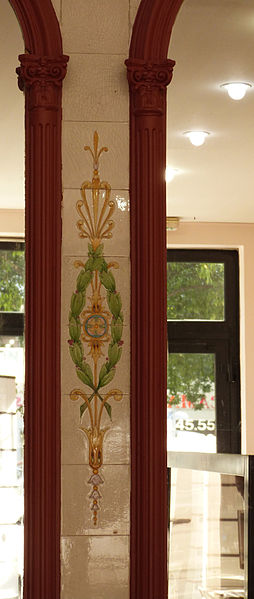 Boulangerie-pâtisserie du début du XXe siècle décorée par l'atelier Benoist et Fils. Les murs étaient revêtus de carreaux de faïence blancs et ornés d'arcades en bois sculpté, soutenues par des colonnettes en fonte. La boulangerie n'existe plus ; une partie du décor, des toiles peintes protégées sous verre, a été récupérée par l'agence immobilière qui occupe l'édifice construit à cette adresse.