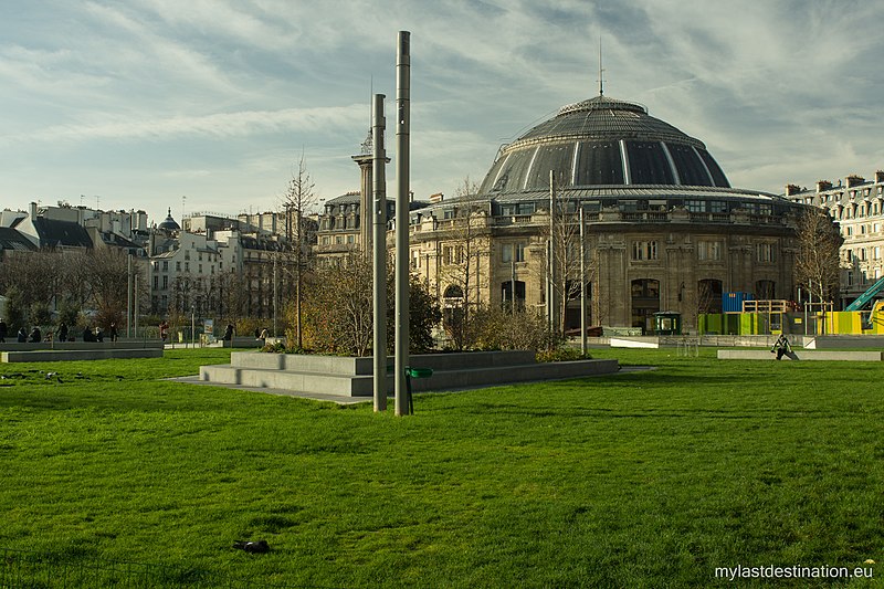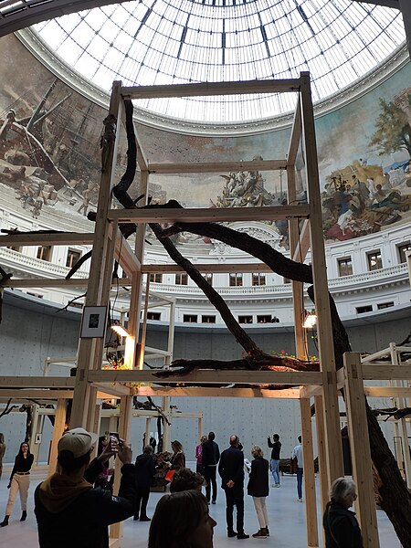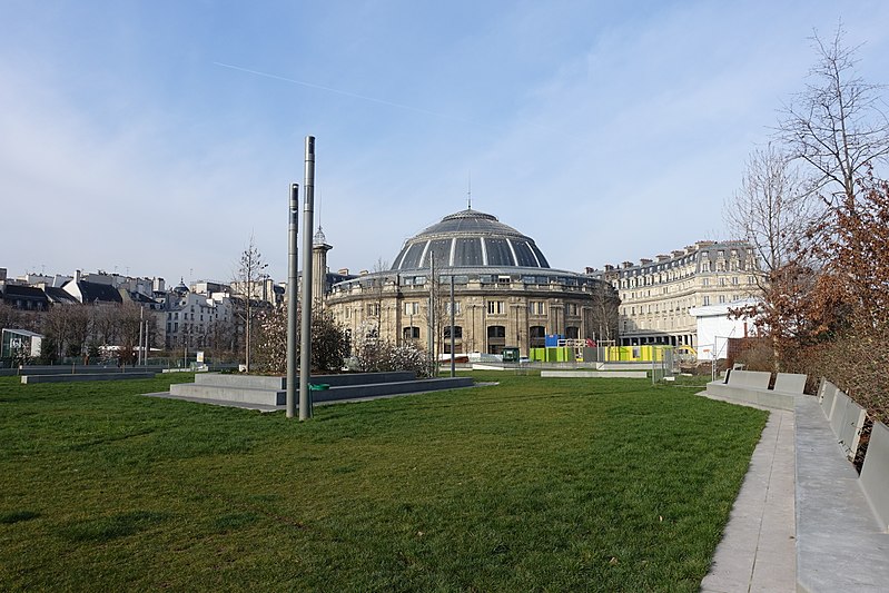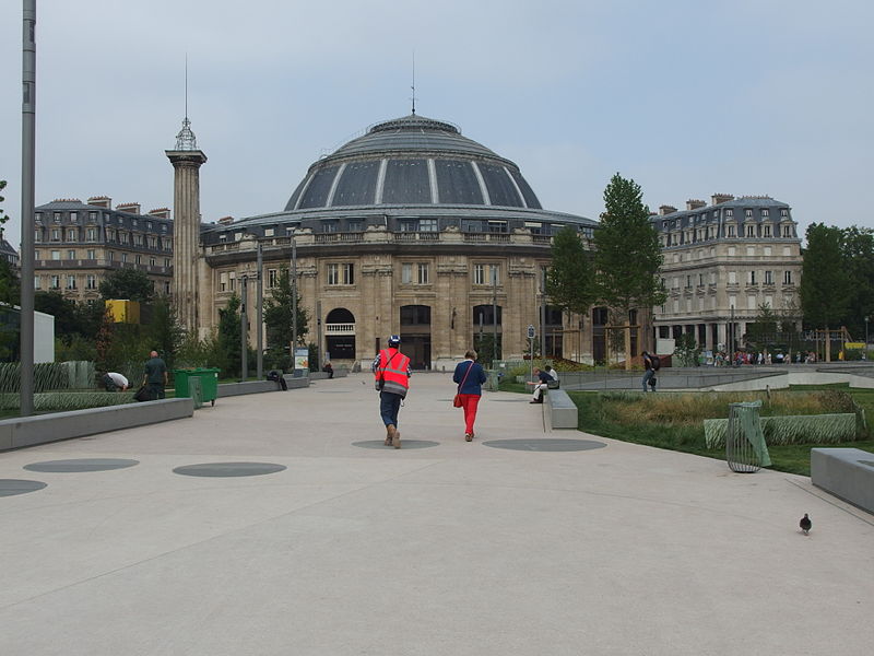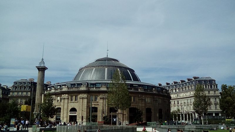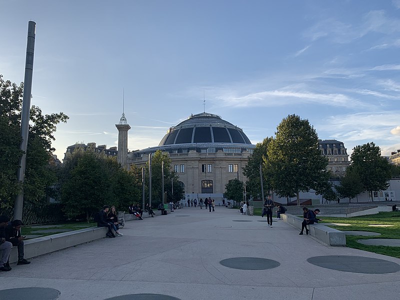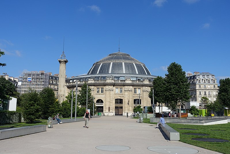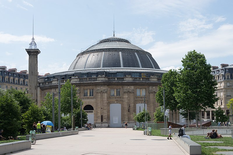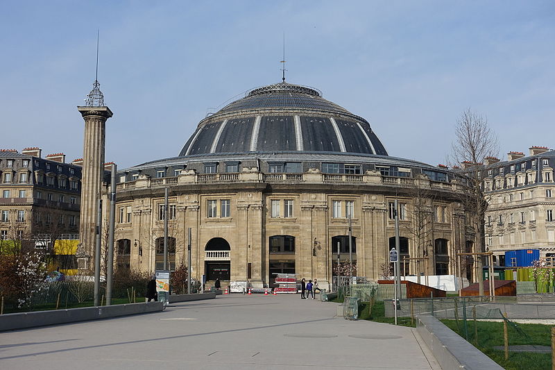 La Bourse de commerce, édifice circulaire coiffé d'une coupole, se situe rue de Viarmes, dans le 1er arrondissement de Paris. L'édifice actuel, construit en 1888-1889 par l'architecte Henri Blondel, occupe l'emplacement de l'ancien hôtel de Soissons. Blondel a intégré des éléments conservés de cet hôtel, de la halle aux blés conçue par Nicolas Le Camus de Mézières et de la seconde coupole réalisée par François-Joseph Bélanger. Le bâtiment de Blondel, de plan circulaire, est formé de vingt-cinq travées, dont la partie inférieure a été maçonnée en brique et la coupole modifiée en fonte et verre avec un nouvel étage et un entresol. La façade principale occidentale s'ouvre par un portique à fronton, porté par quatre colonnes corinthiennes, et surmonté de trois allégories sculptées par Aristide Croisy représentant la Ville de Paris, l'Abondance et le Commerce. L'intérieur conserve l'armature en fer de la charpente de Bélanger et présente une rotonde richement décorée. Dans la partie inférieure de la coupole, une fresque monumentale de toiles marouflées, réalisée entre 1886 et 1889, fait l'apologie du commerce international et représente les cinq parties du monde. Cette composition de 140 mètres de longueur et 10 mètres de hauteur a été peinte par Évariste-Vital Luminais (L'Amérique), Désiré François Laugée (La Russie et le Nord), Victor Georges Clairin (L'Asie et l'Afrique), Hippolyte Lucas (L'Europe), les sections étant séparées par quatre grisailles d'Alexis-Joseph Mazerolle. La fresque, de style réaliste idéalisé propre à l'académisme de la IIIe République, a été restaurée en 2021 par Alix Laveau. Le site a une histoire antérieure dense : l'hôtel de Soissons, devenu délabré, fut vendu puis rasé en 1748-1749 après avoir été saisi par les créanciers de son propriétaire. La ville acquit le terrain et, par lettres patentes de 1762, autorisa le lotissement du site et la construction d'une nouvelle halle aux blés. Nicolas Le Camus de Mézières dressa alors un projet annulaire comportant 25 arcades et deux galeries concentriques protégées par des voûtes et des colonnes d'ordre toscan, avec des greniers voûtés et de vastes escaliers dont un à double révolution. La cour intérieure resta d'abord découverte, puis fut couverte entre 1782 et 1783 par une coupole en charpente conçue par Jacques-Guillaume Legrand et Jacques Molinos et réalisée par le menuisier André-Jacob Roubo. Cette charpente, couverte de cuivre étamé et surmontée d'une lanterne, fut admirée à l'époque mais détruite par un incendie en 1802. La coupole fut reconstrite en fonte, sous la direction de Bélanger et de l'ingénieur François Brunet, entre 1806 et 1811, et couverte primitivement de feuilles de cuivre, remplacées par des vitres en 1838. La halle fut à nouveau affectée par un incendie en 1854 ; son activité déclina et elle fut fermée en 1873. En 1885, le bâtiment fut attribué à la Chambre de commerce, qui le transforma en bourse de commerce sous la direction d'Henri Blondel ; l'édifice réaménagé fut inauguré le 24 septembre 1889, à l'occasion de l'Exposition universelle. Les transformations s'inscrivirent dans les travaux d'aménagement du Second Empire et s'accompagnèrent de démolitions et d'élargissements des voies environnantes, notamment de la rue de Viarmes, et de la création de nouvelles voies d'accès. Au XXe siècle, l'environnement urbain évolua encore : des percées et des opérations sur les pavillons des Halles modifièrent les abords, et l'aménagement du jardin Nelson-Mandela, après la destruction de pavillons dans les années 1970, ouvrit la vue depuis l'est. La Bourse abrita de nombreux marchés à terme, pour des produits tels que les blés, les farines, les huiles, les sucres, les alcools et le caoutchouc, et connut d'importantes réformes après l'effondrement des cours du blé en 1929, avec la création de la Compagnie des commissionnaires en 1935, confirmée par une loi de 1950. La ville transmit la propriété du bâtiment à la Chambre de commerce pour un franc symbolique en 1949, et l'activité de marchés à la criée s'est poursuivie jusqu'à l'informatisation et la fin des transactions sur place en 1998, transférées ensuite sur Euronext. La coupole et son décor sont classés monument historique depuis 1986, et d'importants travaux de restauration ont été menés en 1989 et en 1997 pour la fresque inférieure. Pendant des décennies la Chambre de commerce a occupé le monument, y proposant des services aux entreprises et accueillant régulièrement des expositions sous la coupole. À partir de 2016, le projet culturel porté par François Pinault a conduit à la reconfiguration du site : la ville a acquis le bâtiment en 2017 pour 86 millions d'euros et a confié sa gestion à une filiale d'Artémis via un bail de cinquante ans. Les architectes associés au projet comprenaient Tadao Andō, Pierre-Antoine Gatier, Lucie Niney, Thibault Marca et le groupe Setec ; l'établissement, ouvert le 22 mai 2021, offre 3 000 m2 d'exposition, un restaurant au troisième étage et un studio en sous-sol de 286 places. La programmation est coordonnée avec les sites vénitiens de la Collection Pinault, chaque lieu conservant sa direction propre, et Emma Lavigne dirige la collection depuis septembre 2021. En juin 2021, la presse a mis en lumière des conditions de travail défavorables pour des agents d'accueil employés par un prestataire. Sur le plan architectural, Blondel a préservé l'anneau de Le Camus et l'armature en fer de Bélanger, tandis que l'entrée occidentale et le décor néo-Renaissance confèrent au bâtiment sa monumentalité. La rotonde conserve également l'escalier à double révolution et une riche décoration intérieure qui témoigne de l'architecture et des ambitions de la fin du XIXe siècle.