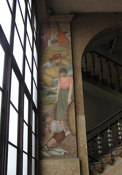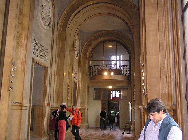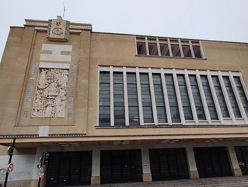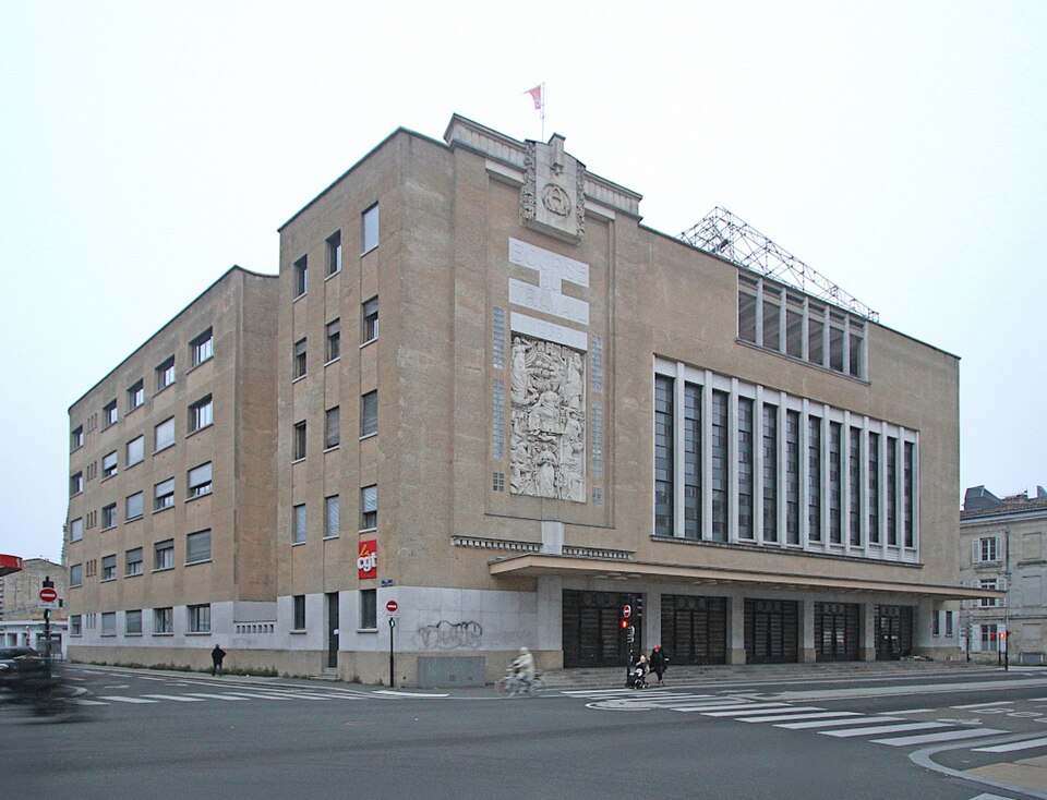 La Bourse du Travail de Bordeaux, située dans le quartier de la Victoire, a été réalisée à l'initiative du maire Adrien Marquet et conçue par Jacques d'Welles, architecte en chef de la ville. Les travaux, engagés en 1935, ont abouti à l'inauguration du bâtiment le 1er mai 1938. L'édifice, exemple remarquable de l'Art déco bordelais auquel ont contribué des artistes comme Jean Dupas et Alfred Janniot, a été classé monument historique le 25 juin 1998. Conçu comme un quadrilatère irrégulier, il se compose de deux trapèzes ouverts sur le cours Aristide‑Briand par cinq portes ouvragées dont les grilles égrènent les corps de métiers ayant participé à sa réalisation. L'ossature en béton de la façade est revêtue d'un matériau imitant le granite, tandis que les colonnes et baies sont en pierre blanche de Comblanchin. Le bas‑relief d'Alfred Janniot, qui orne la façade, célèbre de manière allégorique les activités ayant fait la richesse de la ville et du port. Un axe central réservé à la circulation et deux escaliers munis d'ascenseurs, placés à chaque extrémité, distribuent les deux parties du bâtiment; les portes et rampes exécutées par Garlin ont été dessinées par l'architecte. Une cour intérieure éclaire naturellement des bureaux répartis sur cinq niveaux. La décoration intérieure, pour laquelle près de 6 % du budget fut consacré, a été réalisée entre 1938 et 1942 par des peintres, sculpteurs de l'École des Beaux‑Arts et un photographe, et célèbre Bordeaux, son port, le terroir, les arts, le travail et la paix au moyen de grandes fresques et de photographies monumentales. L'accès au premier étage illustre le style Art déco bordelais : ferronneries, rampes et lustres, composés de cuivre et de boules de verre, témoignent d'un parti pris esthétique mêlant conducteur et isolant électriques. De part et d'autre du palier d'accès à la salle Ambroise Croizat, deux foyers peints directement sur béton présentent des fresques célébrant le port, l'architecture bordelaise, le vin, les âges de la vie et le pin des Landes, tandis que des arches en demi‑cercle et des portes en glace créent des jeux de miroir. Plus précisément, le foyer nord accueille « À la gloire du port de Bordeaux » et une peinture d'une scène populaire par Camille de Buzon ainsi que « À la gloire de l'architecture bordelaise » de Jean André Caverne; le foyer sud comporte « Le vin » et « Les âges de la vie » de François‑Maurice Roganeau et « Le pin des Landes » de Pierre‑Albert Bégaud. La salle Ambroise Croizat est un amphithéâtre classique de 1 300 places, dont 400 au balcon et 900 dans la salle, autrefois meublée de fauteuils en bois. Sa scène à l'italienne porte une grande fresque de Jean Dupas, allégorie de Bordeaux mêlant mythes antiques et symboles modernes, ainsi qu'une composition latérale en douze panneaux où sont inscrits des noms célèbres de l'histoire française des sciences et des arts. Aux quatre angles de la salle se trouvent des fresques identiques représentant le faisceau du licteur coiffé d'un bonnet phrygien. Le péristyle présente des médaillons sculptés par Louis Bate évoquant l'histoire du socialisme à travers les portraits de Proudhon, Fourier et Jean Jaurès accompagnés de citations. Le quatrième étage a fait l'objet en 1986 d'une intervention artistique du photographe Marco Pillot. Peu transformée, la Bourse conserve boiseries, portes et luminaires d'origine, et a fait l'objet de travaux de réhabilitation : importantes opérations en 2003‑2004 pour rendre le bâtiment hors d'eau et rénover les façades, puis des rénovations des troisième et quatrième étages, et depuis 2013 des interventions extérieures visant notamment à restituer l'éclat de la façade et du bas‑relief de Janniot. La Bourse du travail abrite le siège de la CGT, historiquement unique utilisateur du bâtiment.