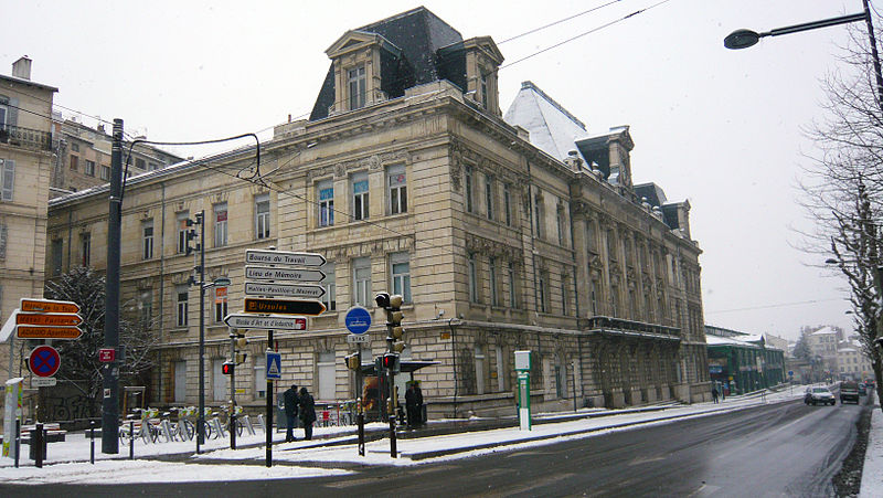 Dès 1896 l'architecte municipal Léon Lamaizière dessine les plans d'un Palais des Auditions et Cours Publics destiné à loger un cartel de syndicats locaux subventionnés et hébergés par la municipalité pour assurer le placement, la formation professionnelle et la défense des intérêts syndicaux ; il est assisté par un adjoint nommé Coste. La réalisation est retardée par les turbulences politiques et sociales de l'époque, notamment la grève de 1900, et le conseil municipal n'adopte les plans qu'en 1901 sous la présidence du maire Jules-Ledin, ancien ouvrier tisseur et secrétaire de la Bourse en 1893. La première pierre de l'édifice est posée en 1902 ; les entrepreneurs chargés de l'exécution sont ceux qui travaillaient habituellement avec l'agence Lamaizière et les travaux s'étalent sur deux ans.