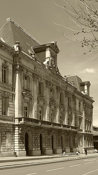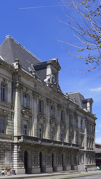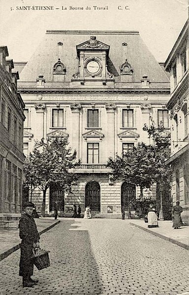 La Bourse du travail, également appelée Palais des auditions et des cours publics, est un édifice situé à Saint-Étienne (quartier Centre-ville - Peuple - Chavanelle) édifié au début du XXe siècle. Le bâtiment présente un plan régulier : ses salles s'organisent symétriquement autour d'un espace central de plan carré, et un péristyle promenoir relie les deux ailes latérales. Les pavillons latéraux portent, à leurs angles, des médaillons aux représentations symboliques — bonnets phrygiens, lierre et mains réunies avec le mot « solidarité », ainsi que têtes et pattes de lion et branches de chêne accompagnées du mot « force ». Au rez-de-chaussée se trouvent les salles des pas perdus et les ateliers ; à l'étage se situent la grande salle d'audition et les escaliers desservant les bureaux des ailes latérales.