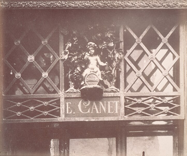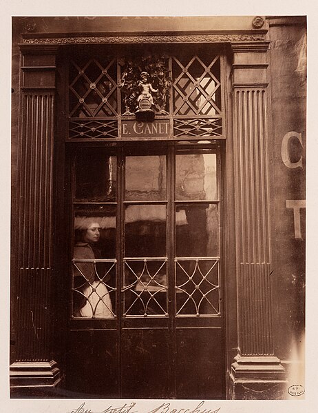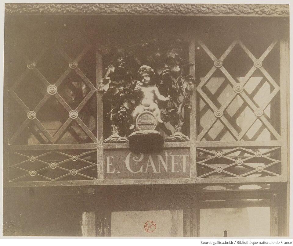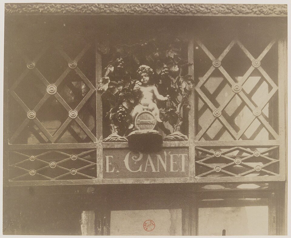 La devanture de boutique avec enseigne Au petit Bacchus de la maison : inscription par arrêté du 22 février 1926
