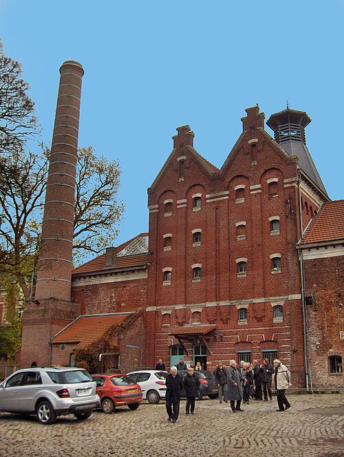 La brasserie-malterie Lefebvre-Scalabrino, située au Cateau-Cambrésis (Nord), occupe l'emplacement de l'ancienne abbaye Saint-André dont subsistent quelques éléments, notamment les communs utilisés comme écuries. La construction d'une nouvelle brasserie a été lancée au début du XXe siècle (les sources évoquent 1910 puis 1913) ; l'usine fut partiellement détruite pendant la Première Guerre mondiale puis reconstruite en 1918. L'édifice, en brique à décors de pierre, présente un haut atelier de fabrication en deux corps à pignons de style régionaliste, dominé par le toit polygonal de la touraille et accompagné d'une cheminée d'aération. Le processus de production se déroulait selon un système en cascade : au quatrième étage se faisaient le stockage et la mouture du malt sous une couverture d'éclairage zénithal, au troisième se trouvait la touraille avec ses paliers pour la torréfaction, au deuxième le concasseur à malt, et les caves voûtées en brique accueillaient la fermentation en fûts. L'énergie était fournie par une machine à vapeur, modèle Weyher et Richemont, encore en place, et transmise par courroies entre les étages ; ceux-ci communiquaient par des escaliers droits métalliques. À l'arrière de la cour se trouvent deux logements patronaux et la cour pavée est traversée par un souterrain menant vers les remparts de la ville. Au moment de la cessation d'activité en 1926, l'entreprise employait près de vingt ouvriers ; les sources indiquent une production annuelle de l'ordre de 10 000 puis près de 12 000 hectolitres, conditionnée en bouteilles et de fermentation haute. Après l'arrêt de la production, le site a été utilisé comme lieu de stockage. Classée monument historique le 27 mars 2000, la brasserie a été acquise par la communauté de communes du Pays de Matisse pour être restaurée : les travaux, conduits pendant trois ans, ont réparé l'édifice à l'identique afin de mettre en valeur les anciennes installations et de permettre une relance de l'activité. Le site conserve un matériel intéressant, notamment des cuves, une trémie, un four et une pompe.