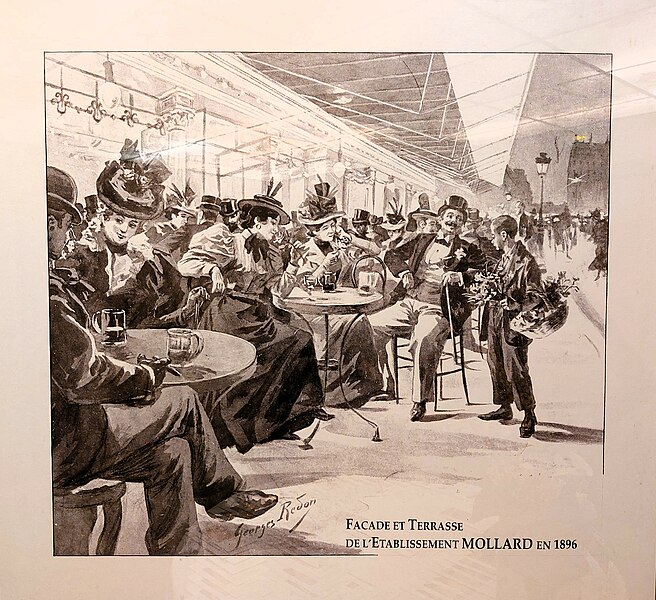 La Brasserie Mollard, située rue Saint-Lazare dans le 8e arrondissement de Paris, est l'une des plus anciennes brasseries de la capitale, à proximité de la gare Saint-Lazare. Les époux Mollard, originaires de Savoie, s'installent à Paris en 1867 ; il livre du charbon tandis que son épouse sert vin, bière et absinthe au comptoir. Bien placée devant la gare, la Maison Mollard rencontre rapidement le succès et, trente ans après leur arrivée, les propriétaires entreprennent d’importants travaux pour moderniser l’établissement. À l’époque de l’Art nouveau, la transformation est confiée à l’architecte Édouard-Jean Niermans, assisté d’Eugène Martial Simas. Niermans supervise l’ensemble et dessine notamment les modèles de chaises, tables, luminaires, portemanteaux et caisse, tandis que de nombreuses mosaïques et faïences sont signées Eugène Martial Simas. Les ateliers de Sarreguemines réalisent des pièces uniques en mosaïque, évoquant la vie autour de la gare Saint-Lazare et des destinations comme Deauville, Saint-Germain-en-Laye, Ville-d'Avray, ainsi que des scènes d’entrée et de sortie de la gare, une « partie fine » et des allusions à l’Alsace et à la Lorraine. Colonnes et plafonds sont ornés d’émaux de Briare aux motifs floraux et d’insectes traités dans le style Art nouveau. La verrière centrale s’effondre en 1920, et après la Première Guerre mondiale l’établissement voit sa clientèle décliner ; pour relancer l’affaire, une grande partie de la décoration est alors recouverte de peinture et de miroirs, préservant ainsi le décor sous-jacent. En 1928, la brasserie est rachetée par la famille Gauthier ; elle traverse la crise des années 1930, puis, sous l’Occupation, continue de fonctionner et aide de nombreux habitants du quartier à survivre pendant la pénurie. Après 1945, la clientèle comprend beaucoup de commerçants rouennais et havrais qui tiennent salon dans le restaurant et y reçoivent fournisseurs et clients, faisant de Mollard un véritable « bureau » d’affaires. Dans les années 1950, la formule de l’omelette surprise, servie à discrétion, contribue au renouveau de la maison jusqu’à la fin des années 1960. En 1965, une campagne de restauration révèle et restitue l’essentiel du décor de 1895 : fresques, mosaïques et émaux retrouvant leurs tons vert d’eau, bleu roi, dorés et marbres beiges et marron, avec des œuvres réalisées par Henri Bichi et Eugène Martial Simas. Des salons plus récents, dont un petit salon rose et deux salons dits « les Jardins de L’Isly », sont aménagés pour séminaires et réceptions. L’architecte d’intérieur Philippe André est consulté en 2011 pour un projet de modification de façade achevé en 2013. La brasserie fait l’objet d’une inscription au titre des monuments historiques depuis le 9 novembre 1989. Indépendante, la Brasserie Mollard propose une cuisine traditionnelle française mettant l’accent sur les poissons et les fruits de mer ; elle dispose de deux salons privés, « Hivers » et « Les trois saisons », qui forment ensemble les Jardins de l’Isly pour l’organisation de réceptions, séminaires et cocktails. L’établissement indique des horaires d’ouverture entre 12 h 30 et 0 h 30.