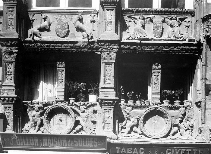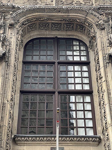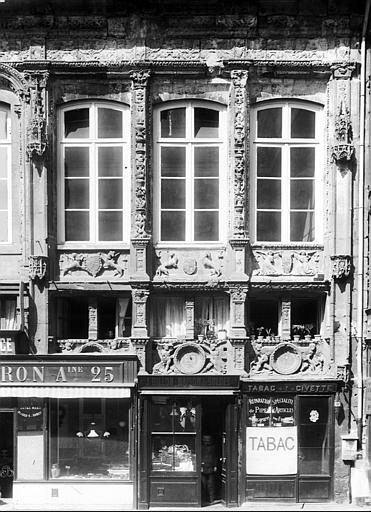 Les fenêtres à meneaux du premier étage ont été progressivement remplacées par des baies à goût classicisant.