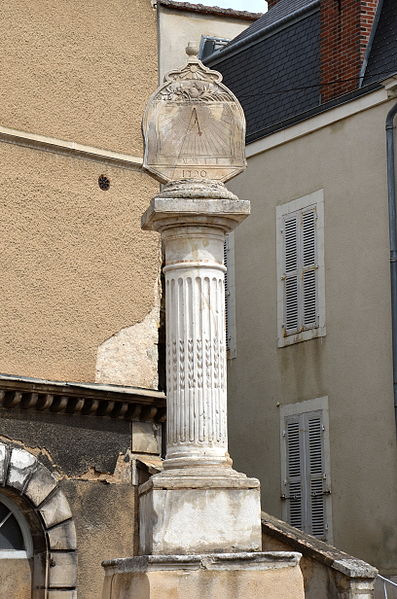 Le cadran solaire de Vermenton se situe au centre de la commune, sur le trottoir à l'intersection de la rue du Général-de-Gaulle (route départementale 606) et de la rue de l'Hôtel-de-Ville, près de la tour abritant le syndicat d'initiative ; il est également appelé « le Méridien ». Le monument est composé d'un cadran placé au sommet d'une colonne de style dorique en calcaire, reposant sur un piédestal cubique en pierre de taille ; l'ensemble mesure environ trois mètres de haut. Il s'agit d'un cadran vertical double, comportant un cadran méridional orienté plein sud et un cadran septentrional orienté plein nord. La face méridionale, la plus visible depuis la route, est la plus ouvragée : son style métallique est polaire, incliné de 18,9° par rapport à la verticale, terminé par un petit fer de lance muni d'un œilleton et soutenu par une jambe métallique. Les heures, en chiffres romains, vont de 6 heures du matin à 6 heures du soir et sont disposées sur le pourtour droit, bas et gauche ; des lignes horaires marquent les heures et les demi-heures. La face méridionale est surmontée d'un bas-relief végétalisé puis du dessin d'un soleil rayonnant encadré de deux étoiles, et la date de construction, 1790, y est gravée. La face septentrionale, tournée vers les immeubles, est moins visible et n'est éclairée que si son azimut dépasse l'Est ou l'Ouest, ce qui ne se produit qu'en début et fin de journée entre l'équinoxe de mars et celui de septembre. Elle ne comporte que les marques pour 4, 5 et 6 heures du matin et pour 6, 7 et 8 heures du soir, indiquées en chiffres romains dans un bandeau arqué, avec des lignes horaires pour les heures et les demi-heures. Le style est absent sur cette face, ce qui la rend inutilisable comme cadran ; elle ne porte pas les bas-reliefs décoratifs de la face méridionale mais est surmontée de l'inscription « Craignons l'œil qui voit tout ». L'inscription portée sur le cadran indique la date 1790. Le monument a été inscrit au titre des monuments historiques en 1989, puis classé en 1991.
