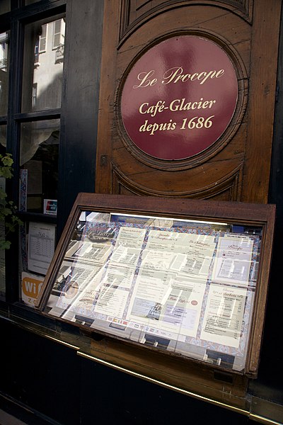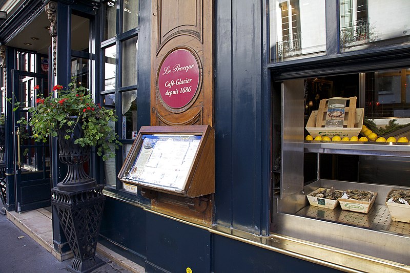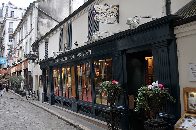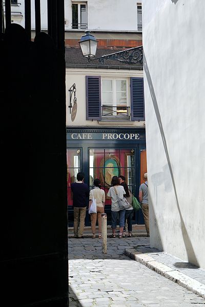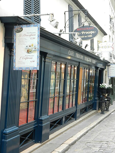 Le Procope, aussi appelé Café Procope, est un café-restaurant situé au 13, rue de l'Ancienne-Comédie, accessible également par la cour du Commerce-Saint-André, dans le 6e arrondissement de Paris. Fondé en 1686, il figure parmi les cafés-restaurants les plus célèbres de la capitale ; fermé en 1890, il rouvre en 1957 sous son nom historique et demeure aujourd'hui en activité. L'introduction du café à la cour de France et l'ouverture d'établissements par des commerçants arméniens expliquent ses premières implantations près de la Comédie-Française, où il attira la clientèle du monde du spectacle. Francesco Procopio dei Coltelli, originaire de Sicile, s'installa face à la Comédie-Française, racheta l'établissement à son ancien patron et lui donna son nom ; son établissement devint rapidement un café littéraire. Il obtint une concession d'eau à la fontaine Saint-Germain et, après sa mort, son fils lui succéda. Au XVIIIe siècle, Le Procope fut fréquenté par des écrivains et philosophes comme Voltaire, Diderot et d'Alembert et devint un haut lieu des échanges intellectuels. La tradition lui attribue plusieurs épisodes célèbres : la naissance d'idées liées à l'Encyclopédie y est évoquée, une plaque commémorative affirme que Benjamin Franklin y prépara le projet d'alliance entre Louis XVI et la jeune république, et certaines de ces récits relèvent toutefois davantage de la légende. Pendant la Révolution, le café changea de clientèle et devint un foyer d'activité politique où se tinrent des réunions du club des Cordeliers et d'autres rassemblements révolutionnaires ; la table de Voltaire fut utilisée lors du transfert de ses cendres et pour d'autres cérémonies funèbres. Au XIXe siècle, sous la direction de Jean-Baptiste Heu, le Procope retrouva son enseigne et son rôle de café littéraire, fréquenté par des romantiques tels que Musset, George Sand et Théophile Gautier. L'ancien établissement ferma en 1890 et le lieu servit par la suite à diverses affaires, dont un bouillon Chartier ; il fut rénové et agrandi en 1957 pour rouvrir sous le nom historique, sans aucun lien avec le café d'origine. Depuis le milieu du XXe siècle, le Procope accueille des cérémonies et des prix culturels, dont la remise des prix de l'Humour noir depuis 1954 et du prix Jean-Zay depuis 2005 ; le groupe Frères Blanc a lancé en 2011 le prix Procope des Lumières, qui a été décerné jusqu'en 2014 avant d'évoluer en 2015 vers le prix Bristol des Lumières. Le groupe Bertrand est devenu propriétaire du café en avril 2016. Sur le plan architectural, la façade et la toiture, avec leurs balcons en fer forgé, ont été inscrites aux monuments historiques par arrêté du 20 janvier 1962. L'intérieur, remanié après 1957, présente des références au XVIIIe siècle : murs rouge pompéien, lustres en cristal, portraits et documents évoquant la Révolution, ainsi qu'une reproduction de la Déclaration des droits de l'homme et du citoyen affichée dans une salle. Des plaques commémoratives, un buste de Voltaire, la table attribuée à Voltaire et divers objets exposés rappellent l'histoire du lieu ; les portes des toilettes portent les mentions « Citoyens » et « Citoyennes ». Le Procope est accessible depuis la station Odéon, desservie par les lignes 4 et 10 du métro.