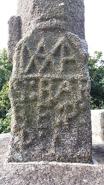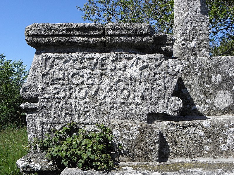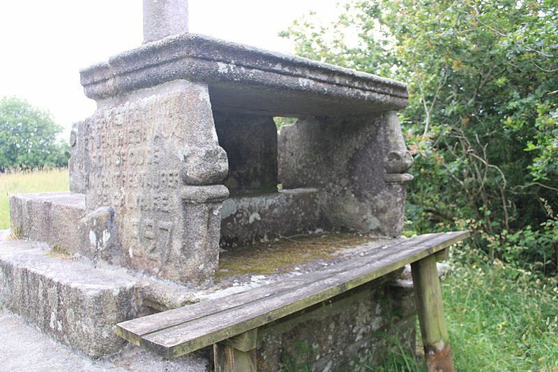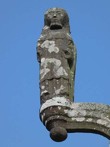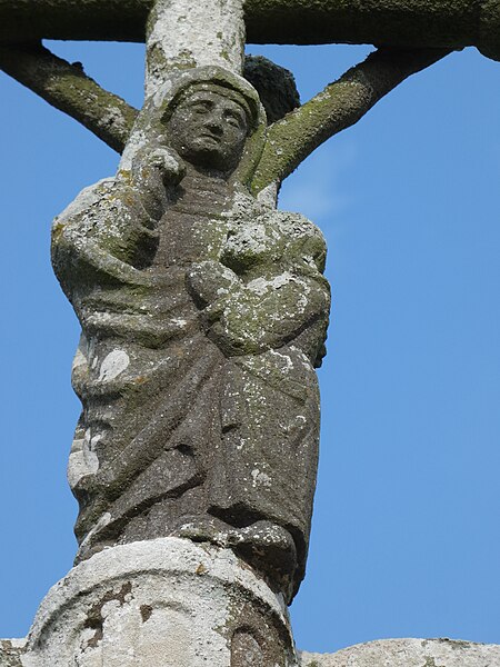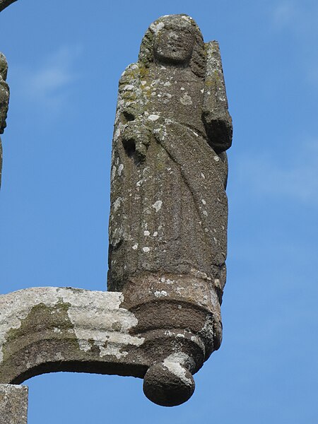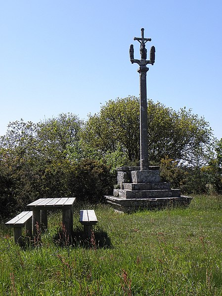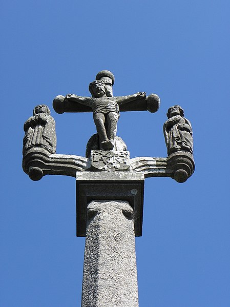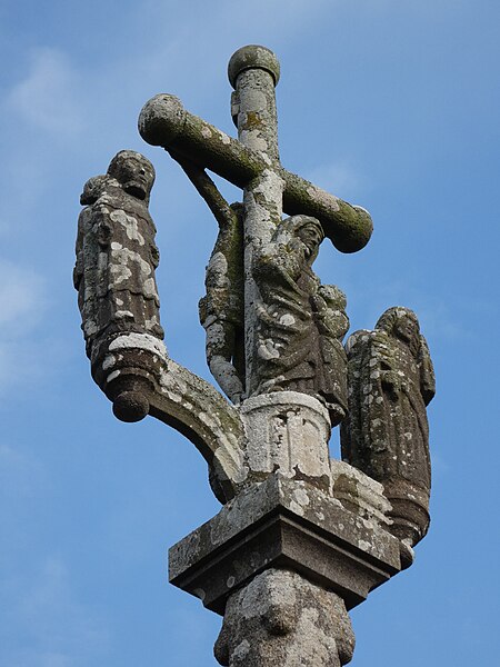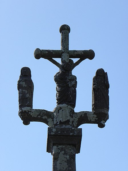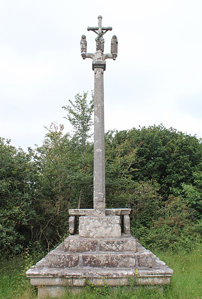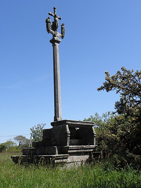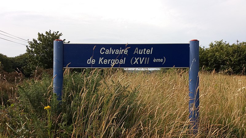 Le calvaire-autel de Kergoal, daté de 1667, est formé de trois gradins carrés supportant un socle en granit dont chaque angle supérieur est atténué par une volute. Le fût, également en granit, repose sur une base carrée pourvue de quatre chanfreins qui déterminent la section octogonale du reste du fût. Au sommet, un chapiteau carré porte une console en kersanton sur laquelle repose la croix. Au pied du Christ se trouve un écu armorié, encadré de part et d’autre par la Vierge et saint Jean. Au revers, le groupe de sainte Anne et de la Vierge enfant est flanqué de deux personnages saints, probablement saint Jacques et sainte Barbe. Un autel a été aménagé sur la face occidentale. Restauré en 1927 par monsieur Trémentine, le calvaire a vu l’installation des statues de saint Jean et de saint Jacques qui se trouvaient alors sur le calvaire de Kerzean et que, selon lui, elles provenaient du calvaire de Kergoal. Le monument porte la date 1667, deux inscriptions mentionnant la construction et la restauration, ainsi qu’une marque de marchand accompagnée des initiales IAM.