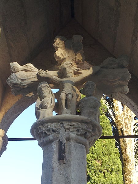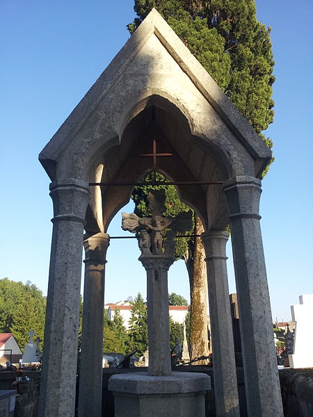 La croix de cimetière, datée du XVe siècle, repose sur un socle récent et est abritée par un édicule qui semble reproduire un ouvrage plus ancien. Les sculptures de la croix sont d'exécution fruste, témoignant d'un traitement simple et populaire.