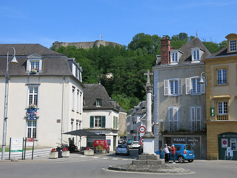 Colonne cannelée en marbre blanc, surmontée d'une croix latine plus récente, reposant sur un dé de marbre blanc portant les armes de France et de Navarre, lui‑même posé sur une pyramide quadrangulaire composée de quatre marches.
