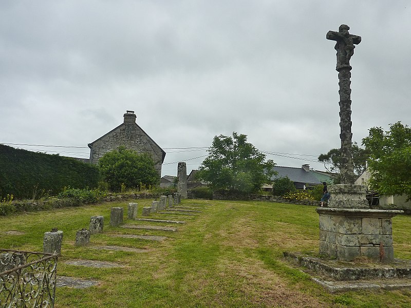 Le calvaire et les bornes milliaires de Locmeltro sont situés au lieu-dit Locmeltro, près de la chapelle Saint-Meldéoc, sur la commune de Guern (Morbihan). Près de la chapelle se dressent deux bornes militaires d'époque romaine : l'une mesure trois mètres, l'autre, tronquée, sert de bénitier à la porte de la chapelle. Le calvaire porte la date 1743, inscrite sur son fût. Il se présente sous la forme d'un fût cylindrique reposant sur un socle-autel de plan carré. Au sommet, au verso figure le Christ en croix et au recto la Vierge. Le calvaire est inscrit au titre des monuments historiques depuis le 19 novembre 1946.