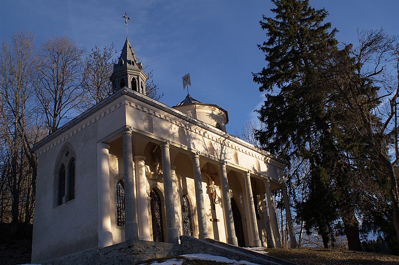 Situé sur la commune de Megève, en Haute-Savoie, ce calvaire prend sa source en 1820, lorsque le père Ambroise Martin, curé de Megève, remarque la similitude du site avec le Golgotha palestinien et se consacre à la réalisation d'un calvaire inspiré de celui de Jérusalem. En 1840, il acquiert les terres et fait ériger quinze chapelles et oratoires illustrant la Passion du Christ. L'ensemble regroupe des éléments architecturaux et des bâtiments aux styles et décors composites, mêlant gothique, rococo et baroque. Les peintures, sculptures et bas-reliefs ont été réalisés par des artistes locaux. L'édifice a été classé au titre des monuments historiques en 1988.