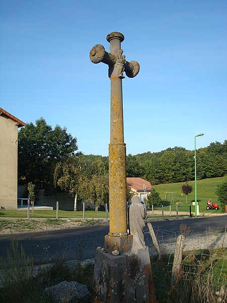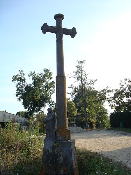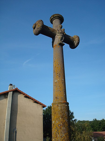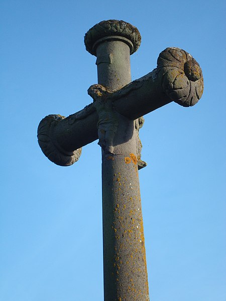 Les branches de cette croix du XVIe siècle, ainsi que son fût, sont cylindriques. Sur une face figure le Christ crucifié, sur l'autre la Vierge à l'Enfant. Aux quatre angles supérieurs du socle se trouvent des personnages féminins, dits « pleurants », revêtus de draperies à plis.