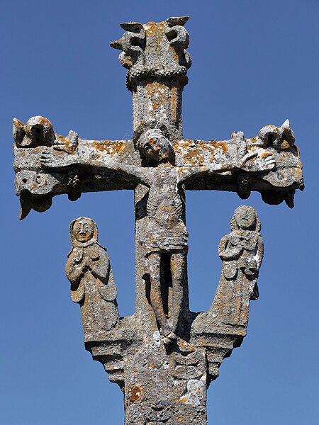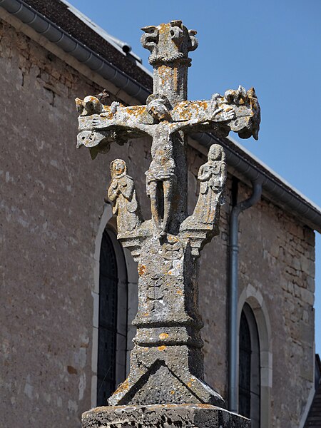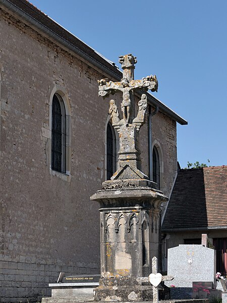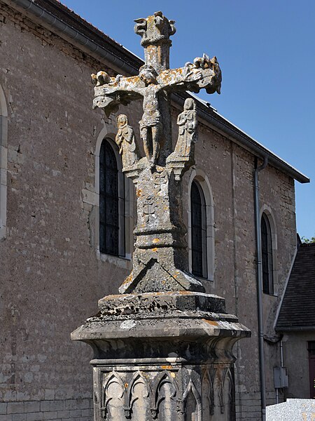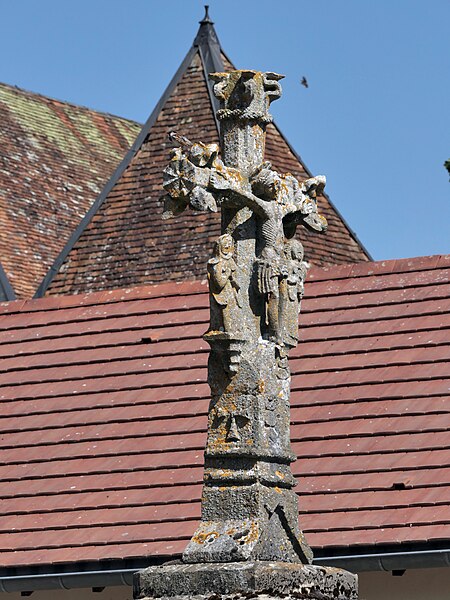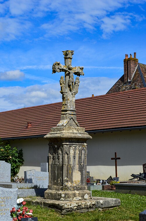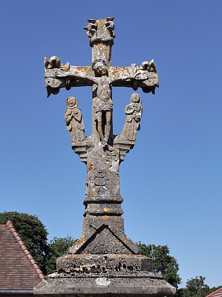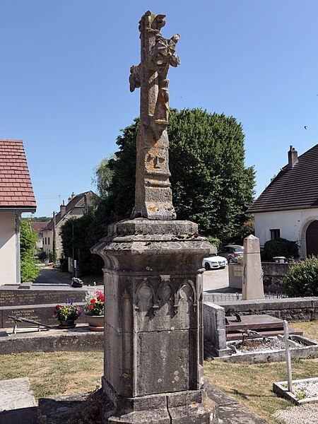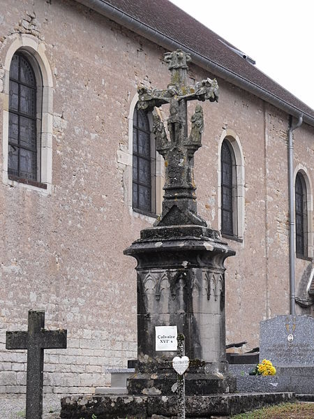 Le calvaire du cimetière de Chaucenne, dans le Doubs, est une croix datée du XVIe siècle, implantée dans le cimetière près de l'église. Il est inscrit au titre des monuments historiques depuis le 19 décembre 1944. Le groupe sculpté montre le Christ en croix, accompagné de la Vierge et de saint Jean, formant une ébauche de croix de Lorraine. Le fût porte la croix à double traverse, insigne des Hospitaliers du Saint-Esprit. Des ressources et notices (base Mérimée, Wikimedia Commons) ainsi que des articles connexes sur les monuments historiques du Doubs et les croix de chemin sont disponibles pour approfondir.