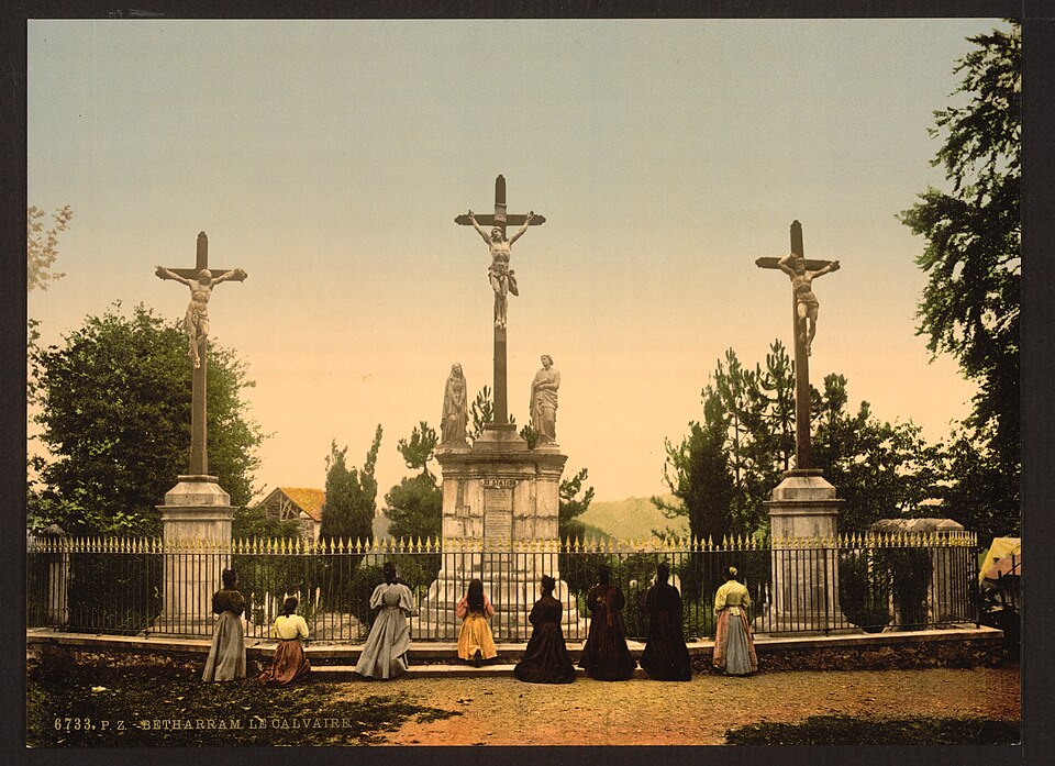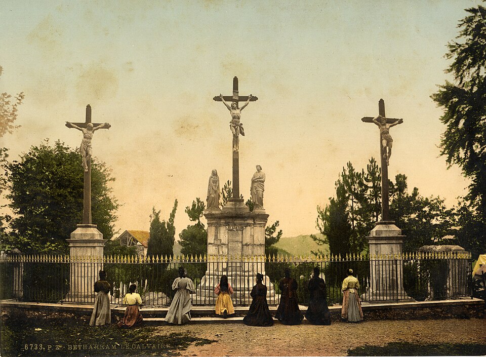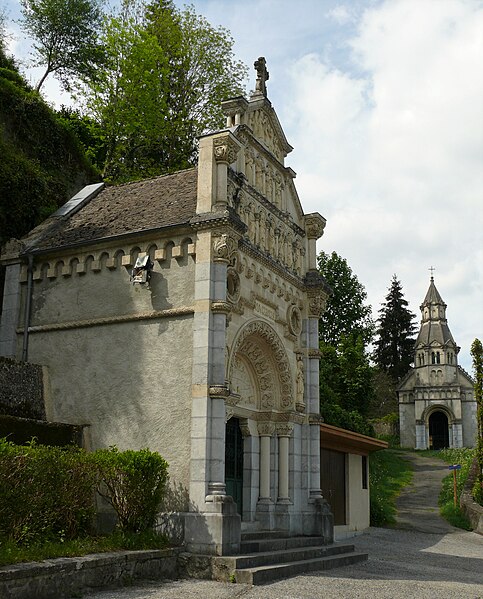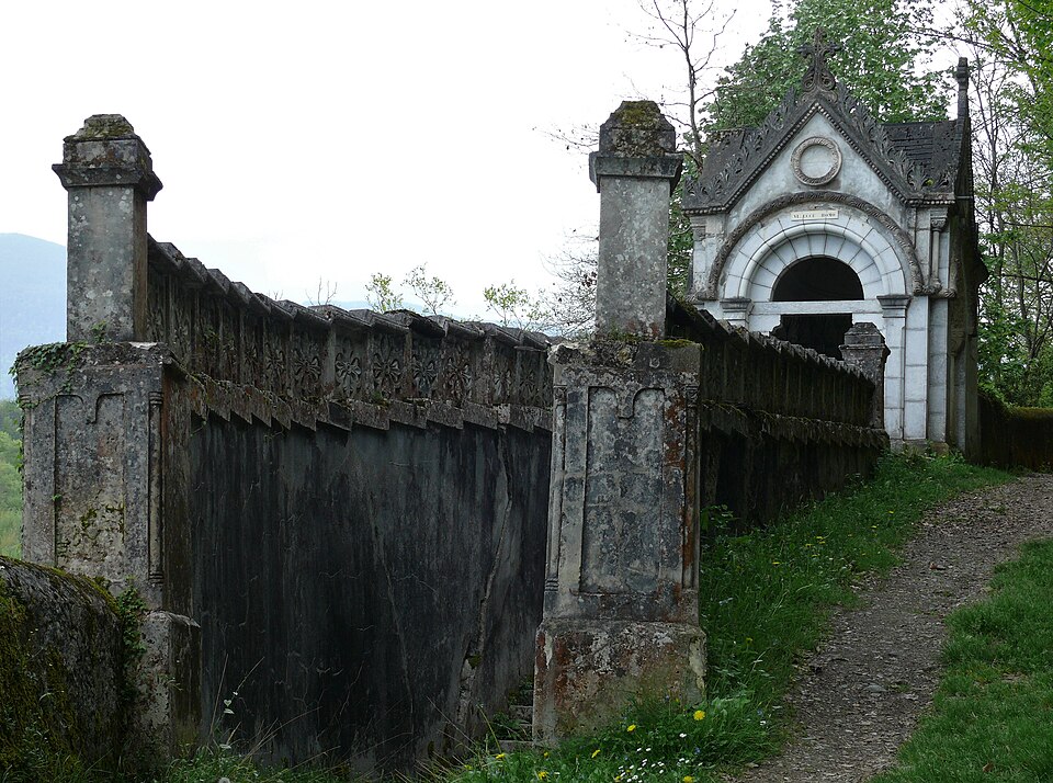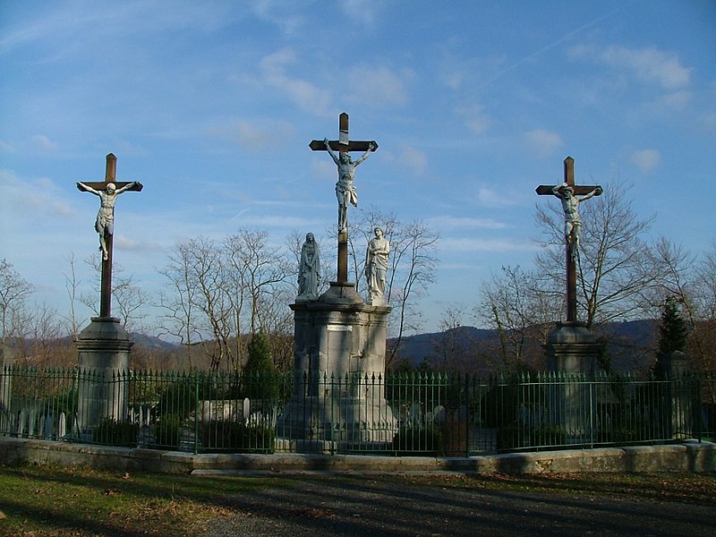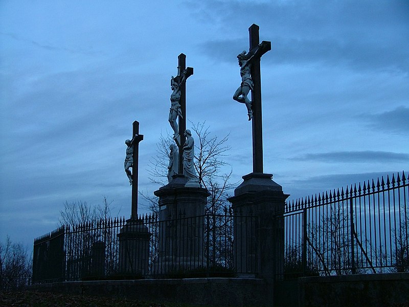 La chapelle de la première station (cad. B 316) ; la chapelle de la deuxième station (cad. B 314) ; la chapelle de la troisième station (cad. B 311) ; la chapelle de la quatrième station (cad. B 327) ; la chapelle de la cinquième station (cad. B 326) ; la chapelle de la sixième station (cad. B 324) ; la chapelle de la septième station (cad. B 330) ; la chapelle de la huitième station (cad. B 332) ; la chapelle de la neuvième station (cad. B 331) ; la chapelle de la dixième station (cad. B 333) ; le calvaire avec ses trois croix et son groupe sculpté qui constitue la onzième station (cad. B 329) ; la chapelle de la douzième station (cad. B 335) ; la Pietà en marbre qui constitue la treizième station (cad. B 328) ; la chapelle de la quatorzième station (cad. B 336) ; la chapelle de la Résurrection, quinzième station (cad. B 337) ; la colline et la parcelle d'assiette (cad. B 328) ; le chemin rural qui dessert les stations (cad. domaine public, non cadastré) : classement par arrêté du 13 février 2002