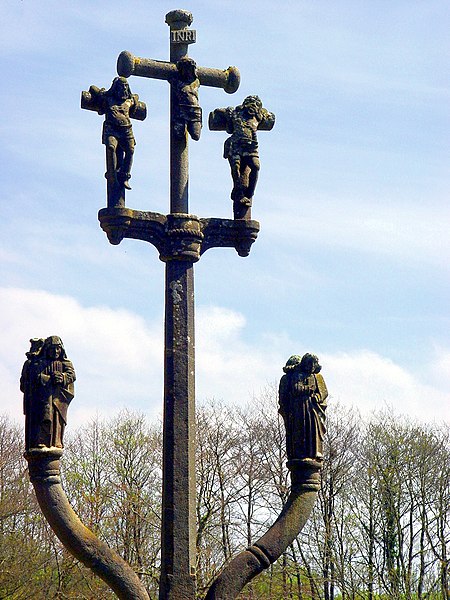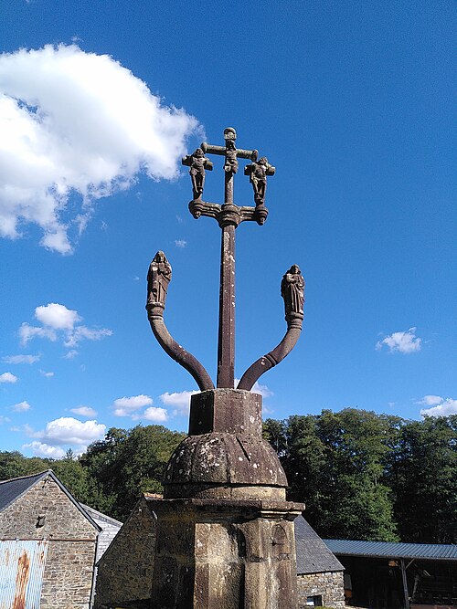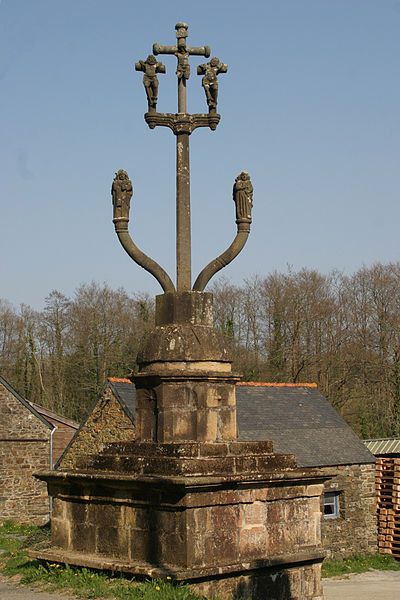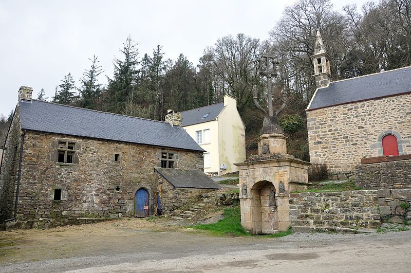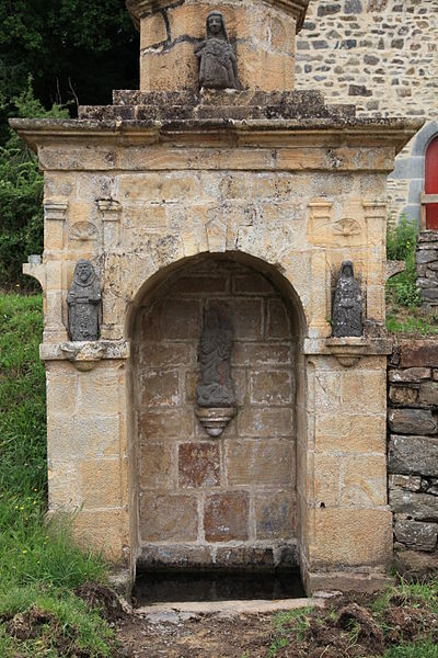 Le calvaire-fontaine de Coatnant, situé à Irvillac (Finistère), associe une chapelle dédiée à Notre-Dame-de-Lorette et un calvaire sur une fontaine monumentale. La chapelle, de plan en croix latine, relève du XVIIe siècle : une date de 1629 est lisible sur un pilier intérieur et elle est parfois datée de 1634; elle a fait l’objet de restaurations vers 1822. Ses autels latéraux présentent en bas-relief quatre sibylles — Persica, Hellesponca, Phrygia et Delphica — avec leurs attributs, et une pierre sculptée encastrée dans le mur extérieur représente une Mise au tombeau avec six personnages, attribuée à la fin du XVe ou au XVIe siècle. Un ecce homo en pierre orne le mur sud; l’ensemble témoigne d’un ancien lieu de pèlerinage très fréquenté. En 1806, le recteur M. Paugam signalait l’affluence des pèlerins et la vente de la chapelle à Yves Saliou, ancien maire; en 1822 l’édifice était en ruine, plusieurs acquéreurs emportèrent des pierres pour réparer des maisons de ferme et la cloche fut suspendue dans l’embrasure d’une fenêtre. La chapelle fut ensuite cédée à la fabrique et reconstruite à plus petite échelle; les arbres qui l’entourent sont plantés sur une plate-forme correspondant à la base des anciens murs de l’édifice primitif. Le calvaire, dû à l’atelier de Roland Doré, s’élève au‑dessus d’une fontaine datée de 1644; il est orné d’une Vierge à l’Enfant dont les pieds reposent sur le corps d’une femme‑serpent, figure probablement assimilée à Damona, déesse celtique des eaux. Du socle partent deux longues branches de granit, courbées en volutes, qui soutiennent adossées les statues de Notre-Dame, saint Yves, saint Pierre et saint Jean, formant une silhouette évoquant une ancre de marine. Le calvaire‑fontaine a été classé monument historique par arrêté du 2 novembre 1976.
