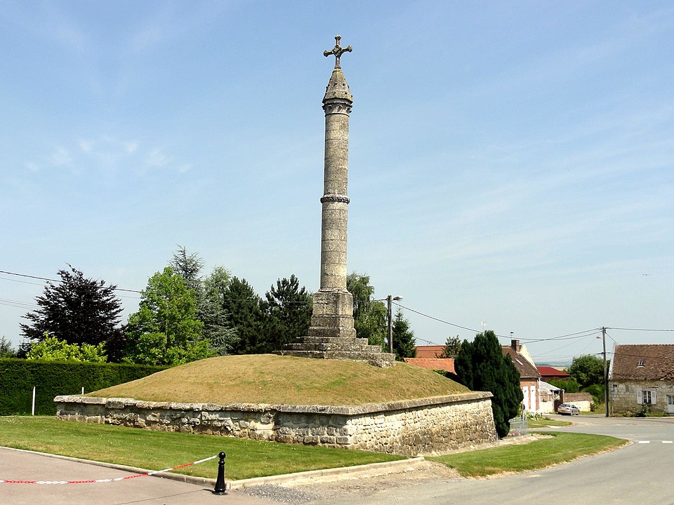 Le calvaire de Montgérain est une croix monumentale située sur la place du village, face à la mairie, dans la commune de Montgérain (Oise, Hauts-de-France). Il date du XIIIe siècle et fait l’objet d’un classement au titre des monuments historiques par arrêté du 13 octobre 1892. Le monument se compose d’une croix reposant sur un cône, lui‑même posé sur un fût cylindrique formé de tambours semi‑circulaires maçonnés. L’ensemble repose sur un socle octogonal à quatre marches. Par sa monumentalité, il est comparable à la Croix de Ménévillers. Des images montrent sa restauration à la fin du XIXe et au début du XXe siècle ainsi que son aspect actuel.