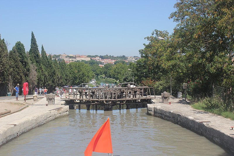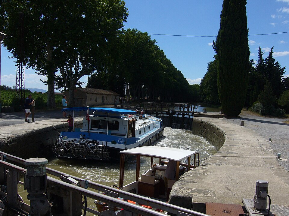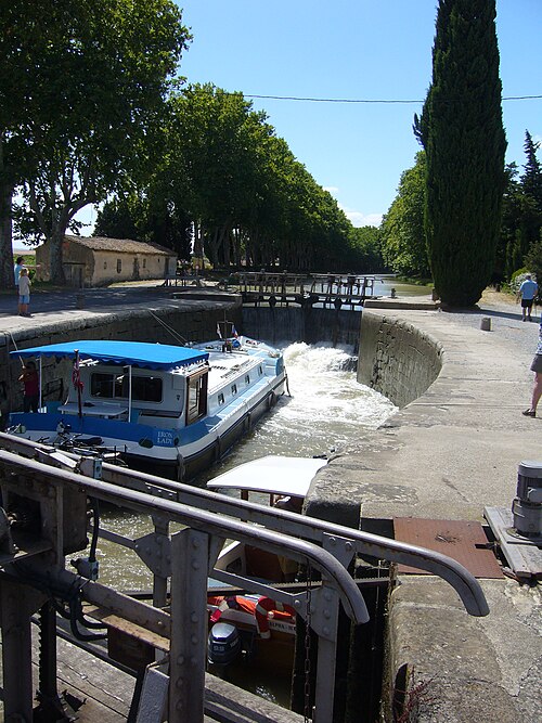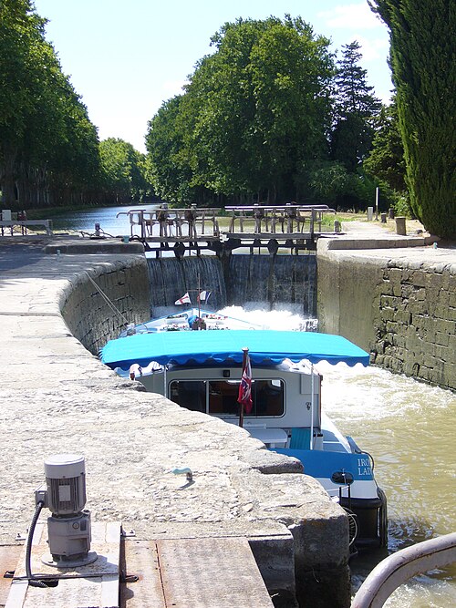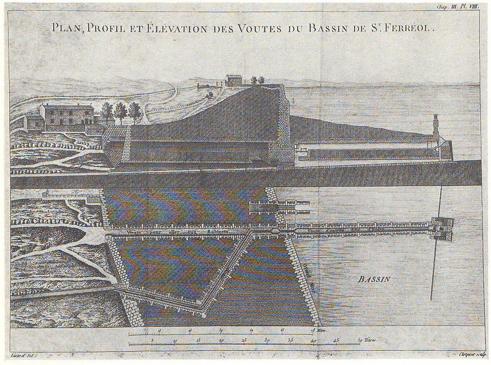 Le canal du Midi, initialement appelé canal royal de Languedoc, est le grand ouvrage conçu par Pierre-Paul Riquet pour relier Toulouse à la mer Méditerranée et ainsi faciliter la communication entre Atlantique et Méditerranée. Riquet fit connaître son projet à Colbert en 1662 et les travaux commencèrent en 1667 par la section entre Toulouse et Naurouze ; la première mise en eau jusqu'à Castelnaudary permit la navigation dès 1672 et le canal fut considéré comme définitivement achevé à la fin de 1682. Le principal défi technique consistait à alimenter en eau le seuil de Naurouze, bief de partage du canal, et Riquet y répondit en captant les eaux de la montagne Noire par un réseau de rigoles et de réservoirs dont le lac de Saint-Ferréol, le bassin de Naurouze et les retenues du Lampy. La construction du barrage-réservoir de Saint-Ferréol fut une innovation notable pour l’époque et la rigole de la plaine servit d’essai concluant pour prouver la faisabilité de l’alimentation en eau. Louis XIV autorisa le chantier par édit en octobre 1666, confiant à Riquet la propriété et l’exploitation du canal sous forme de fief et lui accordant des droits d’expropriation, ainsi que la possibilité d’édifier moulins, entrepôts et logements. Le financement, très supérieur au budget initial, fut assuré par des participations publiques et privées : l’État, la province et Riquet contribuèrent aux coûts, ce dernier complétant ses fonds par des prêts et ses descendants continuèrent à participer aux charges pendant plusieurs décennies. Pierre-Paul Riquet dirigea un chantier important, organisé en ateliers et sections, employant jusqu’à 12 000 ouvriers et adoptant des pratiques sociales et salariales relativement favorables pour l’époque ; il mourut en octobre 1680 avant la fin des travaux. Après l’achèvement des principaux ouvrages, une inspection royale eut lieu en 1681 et le canal fut ouvert officiellement à la navigation, puis remis définitivement en service au terme des travaux. Rapidement apparurent toutefois des problèmes d’alimentation et d’ensablement liés aux apports torrentiels : Vauban procéda à des améliorations à partir de 1686, renforçant le barrage de Saint-Ferréol, prolongeant les rigoles et construisant de nombreux ouvrages maçonnés, aqueducs et ponts-canaux pour mieux gérer les eaux. Le tracé et certaines techniques restèrent le fruit d’un travail empirique et d’adaptations sur le terrain, Riquet s’appuyant sur des collaborateurs et des experts en hydraulique et cartographie. À long terme, le canal transforma les circulations et les échanges dans le Midi, favorisa le commerce régional du blé et du vin, et développa une batellerie spécifique adaptée au gabarit de l’ouvrage. Au XIXe siècle, des liaisons complémentaires et des aménagements hydrauliques complétèrent le réseau fluvial et, en 1856, le canal latéral à la Garonne prolongea la liaison vers l’Atlantique, formant l’ensemble dit « canal des Deux-Mers ». La concurrence du chemin de fer puis de la route a progressivement réduit le trafic marchand, et la navigation commerciale s’est largement éteinte à la fin du XXe siècle ; le canal est aujourd’hui principalement consacré au tourisme fluvial et aux loisirs. Le domaine public du canal et son régime juridique présentent une spécificité historique codifiée, l’État devenant propriétaire par la loi de 1897 et déléguant la gestion aux Voies navigables de France, organisme qui en assure aujourd’hui l’entretien. Classé au patrimoine mondial de l’UNESCO depuis 1996, le canal et son système d’alimentation font l’objet d’un plan de gestion et d’une gouvernance partenariale impliquant l’État, VNF et les collectivités territoriales. Le parcours comprend un grand nombre d’ouvrages d’art — ponts, aqueducs, ponts-canaux et écluses — et, pour la partie du canal du Midi, on recense plusieurs centaines d’ouvrages dont soixante-trois écluses en service sur le tracé principal ; ces réalisations témoignent de la valeur architecturale et technique du site. Enfin, le canal joue encore un rôle hydraulique important : il sert de réservoir pour l’irrigation et pour l’alimentation en eau potable d’une partie du territoire, et son équilibre nécessite une gestion continue des prises, des réservoirs et des opérations de curage et d’entretien.