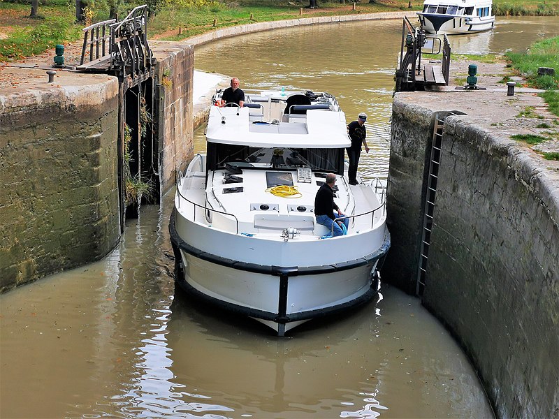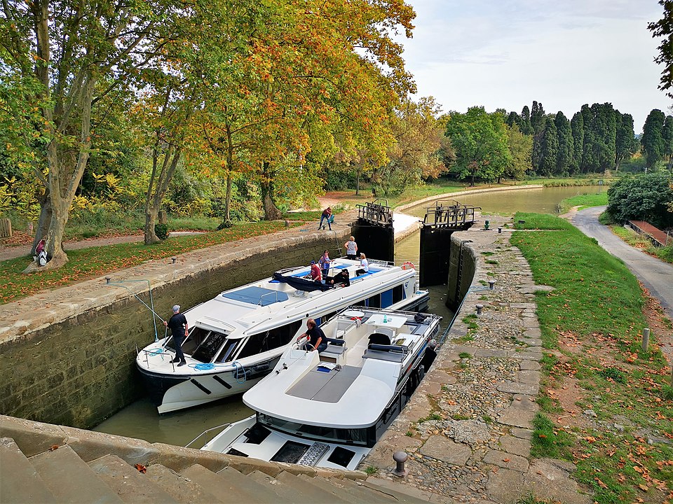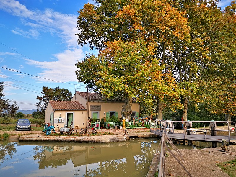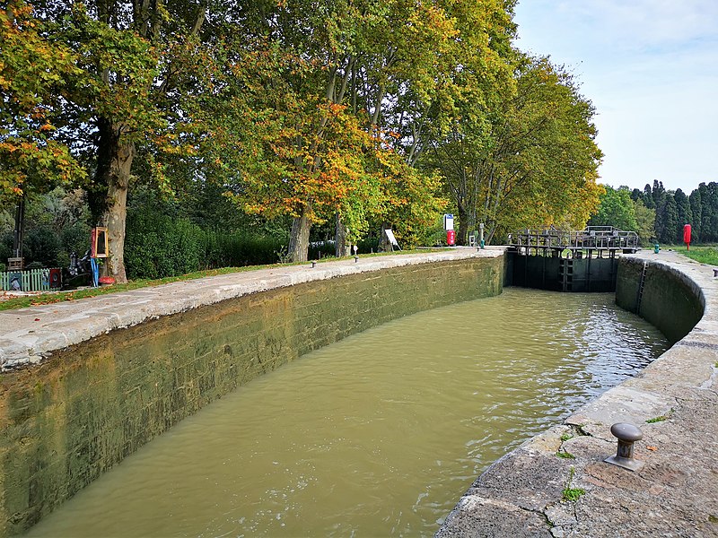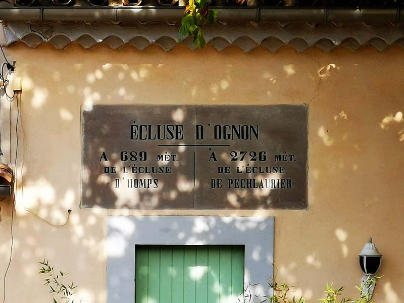 Le canal du Languedoc, dit canal du Midi ou canal de communication des Deux Mers, a été réalisé sous Louis XIV d'après les plans de l'ingénieur Pierre‑Paul Riquet transmis à Colbert en 1662 ; les travaux commencèrent en 1667 sur la section Toulouse–Naurouse, la première partie fut achevée en 1672 et, après quelques rectifications, le canal fut définitivement achevé à la fin de l'année 1682. L'écluse d'Ognon est une écluse à chambre double située à Olonzac, dans l'Hérault, en région Languedoc. Ses écluses voisines sont celles de Pechlaurier, à 2 726 mètres vers l'est, et d'Homps, à 689 mètres vers l'ouest. L'ouvrage a été dessiné au XVIIe siècle par l'architecte Emmanuel de Lestang, auteur du pont‑canal du Répudre, et sa construction a commencé vers 1693. Un projet de reconstruction de l'écluse a été élaboré en 1833. L'ensemble composé des doubles écluses, du pont‑aqueduc sur l'Ognon, de la porte de défense et des épanchoirs sur le canal du Midi à Olonzac a été inscrit au titre des monuments historiques en 1998.