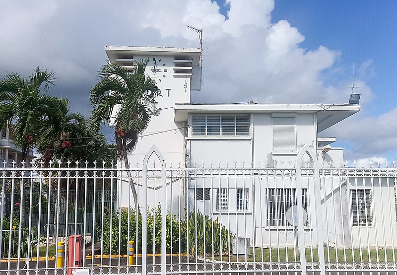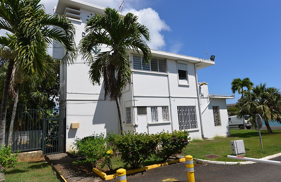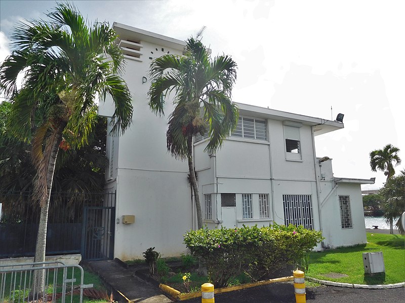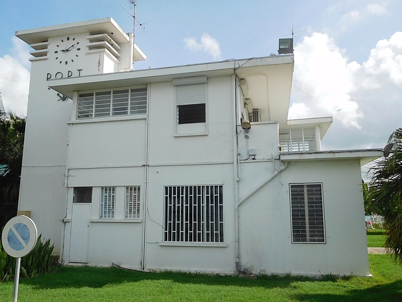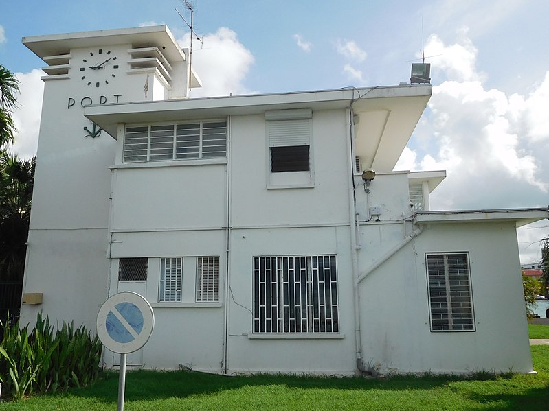 La capitainerie, dernière vestige conservé d’un ensemble comprenant l’immeuble des Douanes et l’office de tourisme, se situe quai Lardenoy à l’entrée de la darse du port de Pointe‑à‑Pitre. Bâtiment en béton armé à toit-terrasse, il présente un rez-de-chaussée surmonté d’un étage, dont l’appartement a conservé une grande partie de ses dispositions d’origine malgré d’importantes modifications extérieures. Reconstruite entre 1930 et 1934 par l’architecte Ali Tur après les dégâts causés par l’ouragan Okeechobee en septembre 1928, elle relève d’un programme du Ministère des colonies visant à relancer l’économie de la Guadeloupe et à favoriser le développement de sa capitale économique. Avec l’essor du complexe Guadeloupe‑Port‑Caraïbes à la fin des années 1970, la capitainerie est devenue progressivement inadaptée aux besoins portuaires et les services administratifs ont été transférés sur un nouveau site ; le bâtiment est resté inoccupé pendant de longues années avant d’être inscrit au titre des monuments historiques le 22 novembre 2013. De plan carré et organisé autour d’une cage d’escalier, l’édifice se compose de trois modules en dégradé : un campanile‑horloge sur deux niveaux, un corps central avec un étage et une galerie ouverte vers le sud, et un dernier volume de plain‑pied. Les modules présentent de nombreux décrochements et sont coiffés de toits plats en encorbellement qui soulignent l’horizontalité des lignes, évoquant des visières. Sur l’une des façades, l’inscription « PORT » est encadrée par une horloge et une ancre, marquant son rôle fonctionnel et symbolique au sein du port.