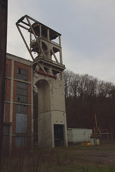 Le chevalement en béton armé est de type avant-carré porteur à deux poussards ; il a été construit de 1930 à 1932 pour la Compagnie des Mines de Lens et s'inspire des modèles que cette compagnie a élevés dans le Nord‑Pas‑de‑Calais à partir de 1920.