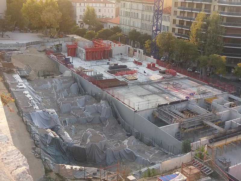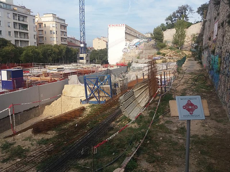 Après l’épuisement des recours, les travaux de construction ont repris sur la parcelle et la municipalité a fixé des modalités de visite limitées pour la zone classée. Le site a été classé au titre des monuments historiques le 13 septembre 2018. Au printemps 2023, l’association ART 13 et le collectif de défenseurs de la carrière ont déposé un recours en annulation contre une décision préfectorale d’octobre 2022 autorisant le ré-enfouissement des vestiges. Des photographies et relevés réalisés pendant la fouille montrent les vestiges protégés par géotextile et sable, les cuves de sarcophages laissées en cours d’extraction, les zones d’exploitation hellénistique et romaine, ainsi que des blocs encore en place.