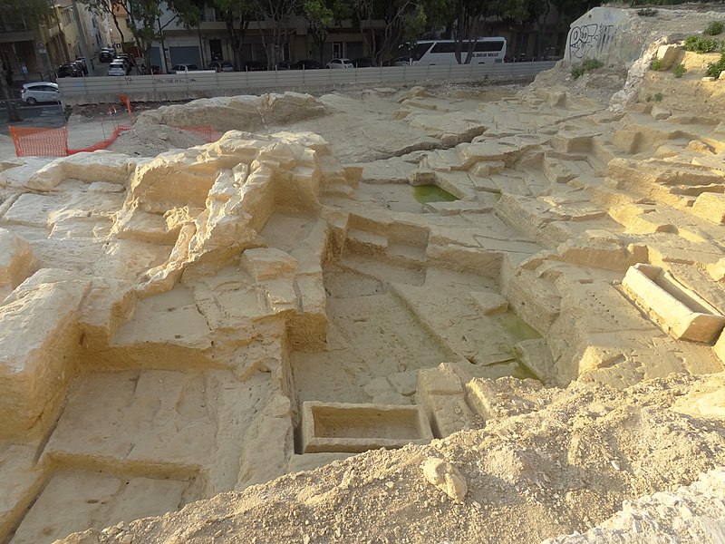 Lors de la fouille, les archéologues ont mis en évidence une exploitation creusée sur plus de six mètres de profondeur et un atelier de production de sarcophages attesté par la présence de la chaîne opératoire complète, depuis l’ébauche jusqu’à la cuve. Une cuve achevée mais défectueuse a été retrouvée en place et n’a jamais été utilisée. La carrière a connu au IIe siècle av. J.-C. une reprise d’activité caractérisée par l’ouverture d’une nouvelle brèche et l’extraction de grands blocs, dont certains abandonnés en raison de défauts rendant leur mise en œuvre impossible. Une phase d’exploitation d’époque romaine est également documentée, notamment par un graffito qui pourrait relever d’un compte de carriers.