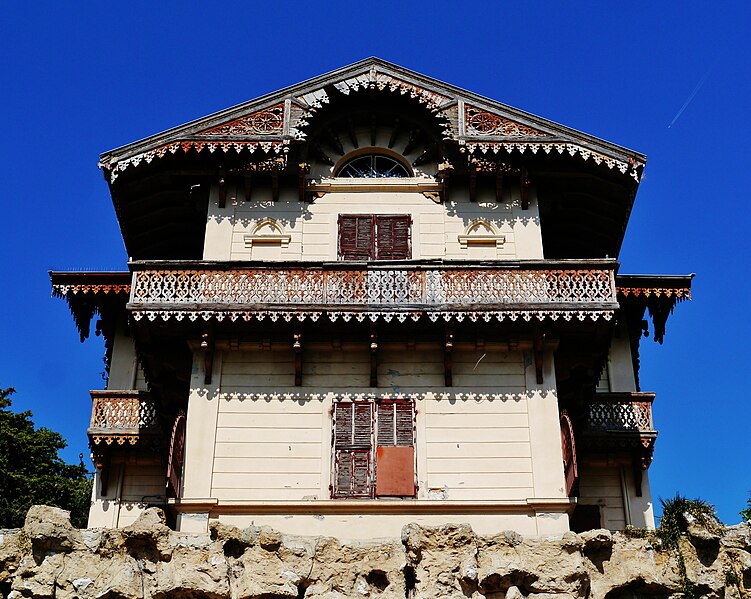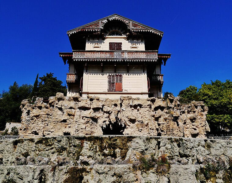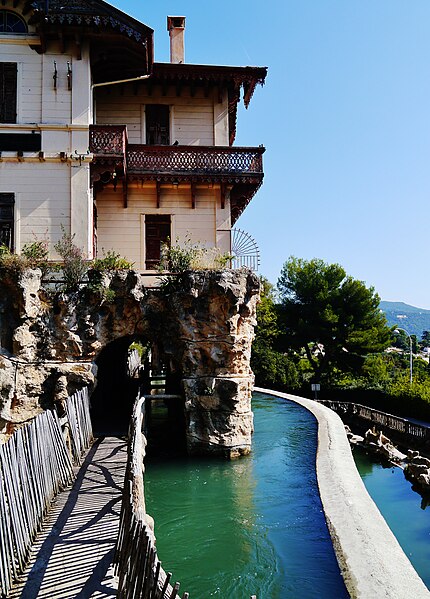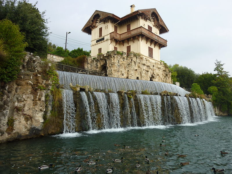 Les parties suivantes de la cascade : totalité des parties en eau à ciel ouvert de l'arrivée du canal, avec les bassins et les chutes ; cheminements, escaliers et accessoires en rocaille de ciment armé aux abords immédiats ; grottes du soubassement, façades et toiture de la maison de garde (cad. EM 18) : inscription par arrêté du 28 novembre 2001