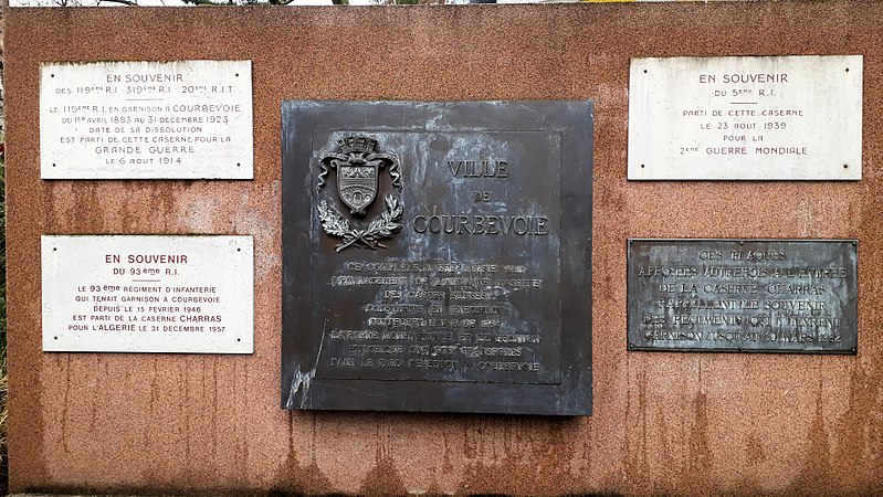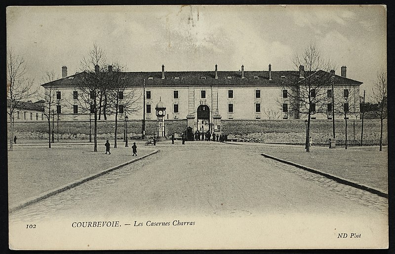 La caserne Charras est une ancienne caserne de Courbevoie dont une partie de la façade a été remontée dans le parc du château de Bécon. Elle a été construite en 1756 par l'architecte Charles-Axel Guillaumot pour abriter les Gardes suisses, en application d'un décret royal de 1754, et réalisée sur le même modèle que les casernes de Rueil-Malmaison et de Saint-Denis. Le 10 août 1792, les Gardes suisses de cette caserne, commandés par le marquis de Maillardoz en remplacement de Louis-Auguste d'Affry, partirent défendre les Tuileries ; sur 950 hommes, seulement 300 revinrent. Sous le Premier Empire, la caserne logea le 1er régiment de grenadiers de la Garde impériale. Pendant la révolution de 1830, des habitants de Courbevoie s'en emparèrent alors qu'elle était défendue par le bataillon de dépôt du 3e régiment de la Garde nationale. En 1855, le 1er régiment de grenadiers de la Garde impériale y prit ses quartiers, puis en 1872 le 2e régiment d'infanterie provisoire, devenu le 102e régiment d'infanterie de ligne, s'y installa. Elle reçut en 1886 le nom de « caserne Charras » en hommage au général Joseph Charras et à son fils, le colonel Jean-Baptiste Adolphe Charras. De nombreux régiments s'y succédèrent : le 119e régiment d'infanterie de 1893 à 1923, pendant la Première Guerre mondiale des bataillons de tirailleurs sénégalais ainsi que le 319e régiment d'infanterie et le 20e régiment d'infanterie territoriale, puis le 5e régiment d'infanterie de 1929 au 23 août 1939. De 1943 à 1945 s'y tint l'École des officiers de la Gendarmerie nationale, et du 15 février 1946 au 31 décembre 1957 le 93e régiment d'infanterie y fut stationné avant son départ pour l'Algérie. Parmi ses pensionnaires figurent Serge Gainsbourg, qui a déclaré l'avoir fréquentée en 1948, et le philosophe Maurice de Gandillac, cantonné sous les ordres de Jean de Lattre de Tassigny. Les bâtiments furent inscrits à l'inventaire supplémentaire des monuments historiques le 22 mars 1929. La caserne fut détruite au début des années 1960 ; seule la façade de l'avant-corps central fut conservée et remontée dans le parc du château de Bécon. En 1969, l'architecte Henri Pottier aménagea sur le site le Centre Charras, comprenant un centre commercial, un hôtel, une piscine olympique, une patinoire, une station-service, 1 000 logements, 1 600 places de stationnement et environ deux hectares d'espaces publics pour la place Charles-de-Gaulle. Des dessins, photographies et une plaque commémorative témoignent aujourd'hui de l'histoire de la caserne.