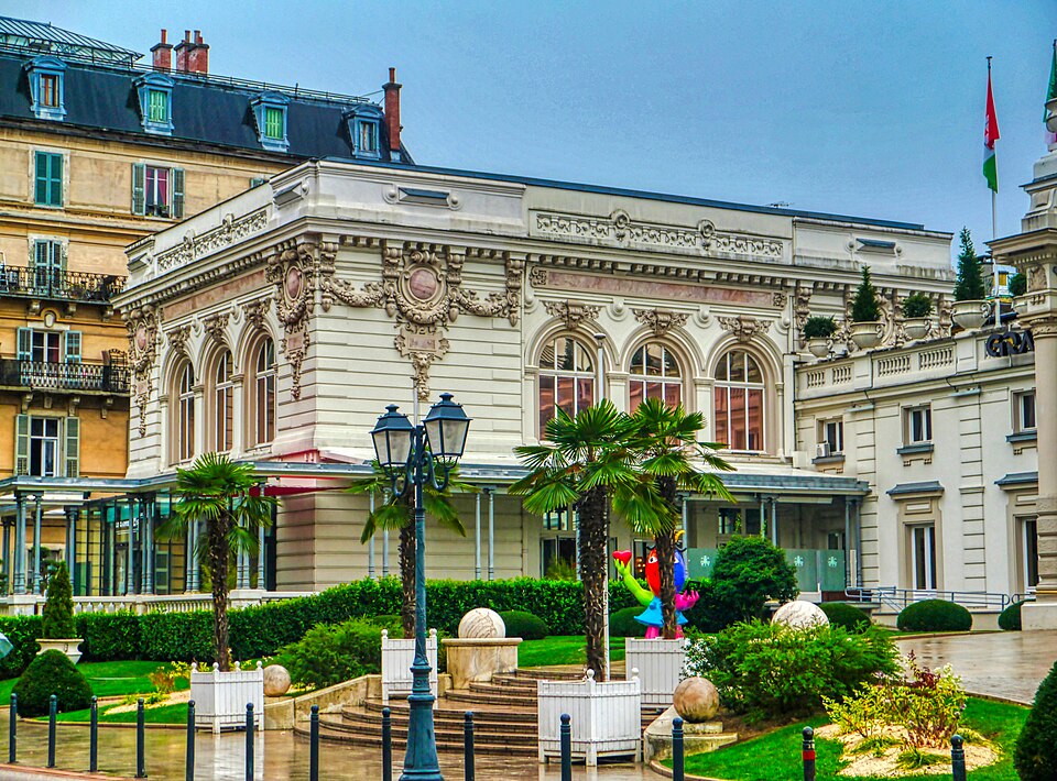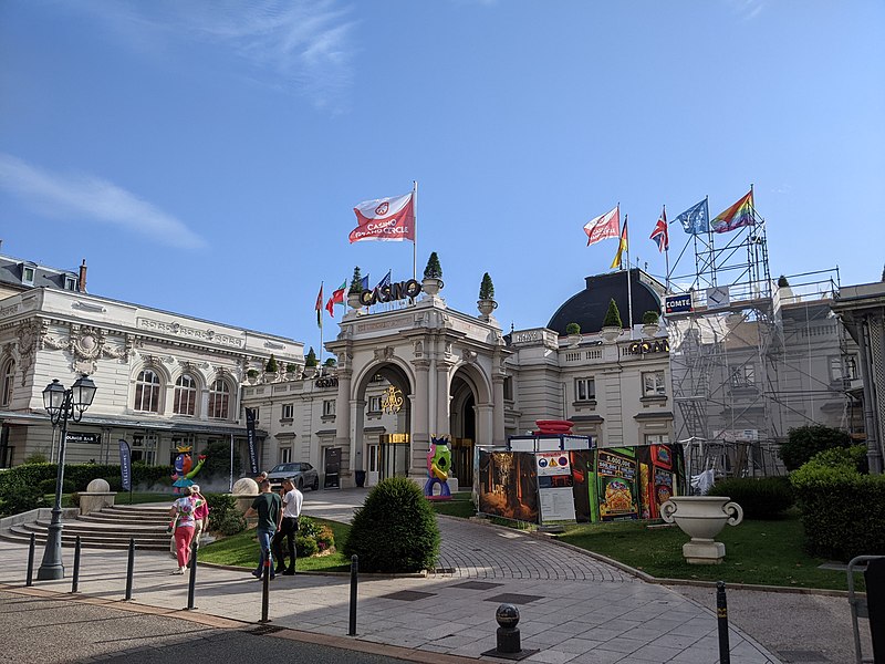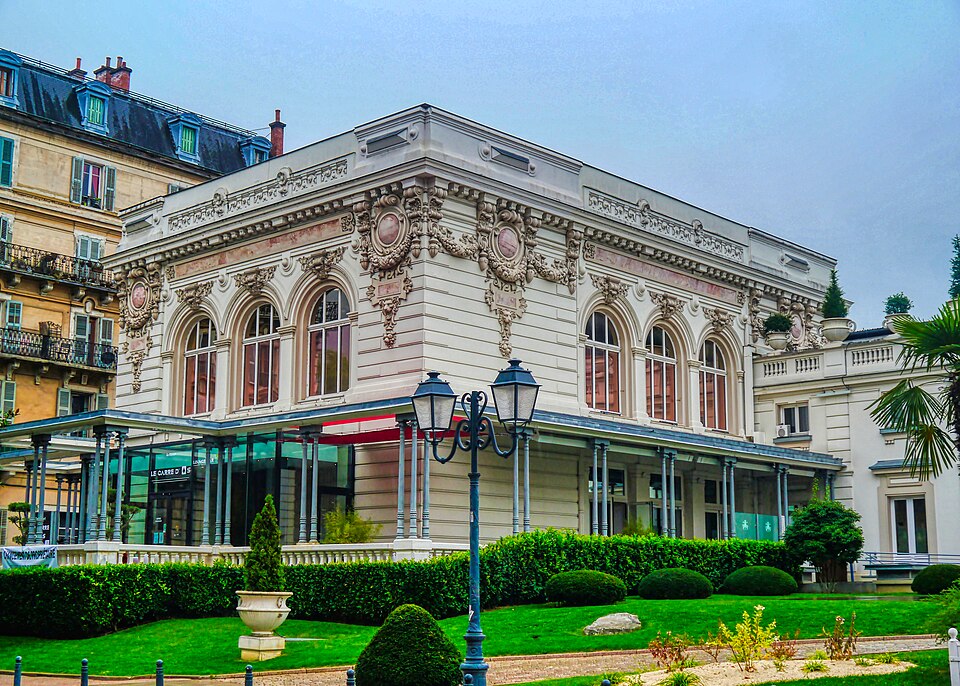 Le Palais du Casino dit du Grand Cercle, ancien Palais de Savoie, est implanté à Aix-les-Bains (Savoie) et constitue un ensemble architectural majeur, au même titre que le casino d'Évian ; il est inscrit et classé au titre des monuments historiques et comprend un théâtre à l'italienne. Le théâtre, de plan rectangulaire, s'insère dans le plan plus irrégulier et plus vaste des infrastructures du casino ; après de nombreuses campagnes de travaux, seules les mosaïques des dômes du hall d'entrée et celles du théâtre demeurent des témoins authentiques de l'architecture de la fin du XIXe siècle. Le casino disposait dès 1849 d'un théâtre mobile, remplacé ensuite par un édifice permanent attribué à Abel Boudier, qui s'avéra rapidement insuffisant. Un concours lancé en 1892 pour la construction d'un nouveau théâtre présenta treize projets ; le premier prix revint à Adolphe Coquet, le second à Gaspard André et le troisième à René Boisseau. Les plans de Coquet comportaient des incohérences sur la longueur des façades et empiétaient sur le jardin neuf au nord du casino ; la Société du Cercle renonça à ces travaux en 1895, faute de ressources suffisantes. En 1896, après une étude d'agrandissement et la constatation de l'état défectueux de l'ancien théâtre, l'Assemblée générale confia à Henri Eustache l'établissement d'un nouveau projet, qui fut retenu après comparaison avec celui de Coquet. L'ancien bâtiment conçu par Boudier ne fut pas entièrement détruit : il servit de fondations au foyer et à la salle du nouveau théâtre, inauguré en juin 1899 alors que la décoration restait inachevée. Le cadre de scène fut orné d'un cartouche monumental sculpté par Jean-Baptiste Gascq ; des améliorations techniques concernèrent les cintres et la fosse d'orchestre, dont le plancher devint mobile, et un magasin indépendant pour les décors fut édifié rue du Temple (aujourd'hui détruit). La décoration intérieure fut achevée vers 1909-1910 selon les plans de M. Gabin, donnant au casino un théâtre adapté à sa clientèle prestigieuse et intégrant des dispositifs inspirés des théâtres de Vichy et de Zurich. Le Grand-Cercle avait été inauguré en 1850 par le roi Victor-Emmanuel II de Savoie ; l'édifice d'origine, signé de l'architecte chambérien Charles-Bernard Pellegrini, comprenait une salle de bal centrale flanquée de deux salons, l'un pour le jeu et l'autre pour la lecture et la correspondance, et fut agrandi par la suite par deux pavillons latéraux. En 1899 le bâtiment se dota d'un théâtre de 900 places équipé d'une machinerie en bois, et des œuvres de l'artiste Di Credico furent installées dans la salle des jeux. Pendant la Première Guerre mondiale, l'établissement fut mis à disposition pour recevoir des blessés : en août 1914 il servit d'ambulance et, lors de la nuit du 12 au 13 septembre 1914, on y convoyait 85 blessés et improvisait 200 lits supplémentaires, avec deux salles d'opération aménagées dans des locaux annexes. Au printemps 1915 la vie civile reprit progressivement et, à la demande du maire, l'évacuation du Grand-Cercle, utilisé comme hôpital dépôt de convalescents, commença le 12 novembre pour s'achever le 15 janvier 1916 ; l'année suivante, certains hôtels furent également libérés pour accueillir des curistes. De nombreuses personnalités fréquentèrent le casino, parmi lesquelles Raimu, la reine Victoria et le roi Georges Ier de Grèce ; l'acteur Raimu travailla par ailleurs une saison comme croupier. Restauré en 1973, le théâtre est aujourd'hui loué à la ville d'Aix-les-Bains, qui en assure l'exploitation.