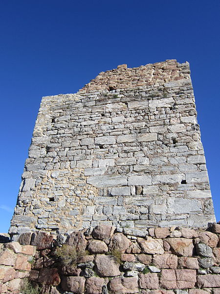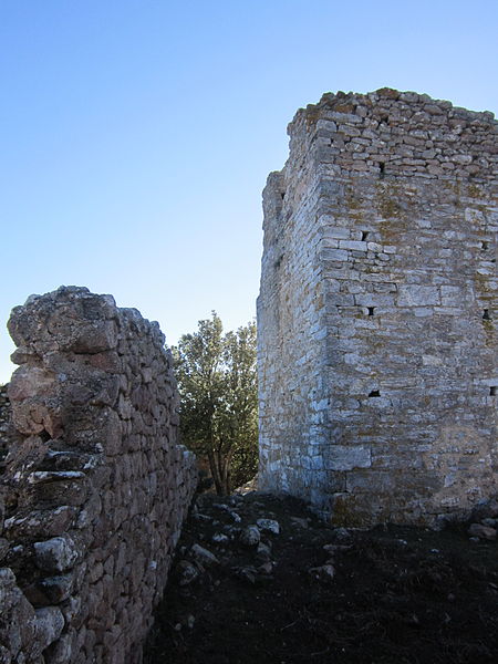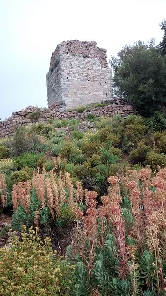 Le Castello de Serravalle est l'un des édifices militaires médiévaux les mieux conservés de l'île. Il a peut‑être été édifié au XIIIe siècle, occupé par les Gênois au XVe siècle, puis abandonné au XVIe siècle. L'ensemble se compose d'une courtine circulaire percée de plusieurs archères, correspondant à un second état de construction, postérieur à la tour. À l'intérieur de la courtine, deux ou trois bâtiments ont été accolés. Au centre, le donjon carré révèle, par sa maçonnerie, deux campagnes de construction : la partie supérieure présente un aspect analogue à celui de la courtine, tandis que la partie inférieure est en moellons de calcaire bien taillés disposés en assises horizontales alternant assises épaisses et assises plus fines. L'ensemble du rez-de-chaussée est occupé par une citerne voûtée.