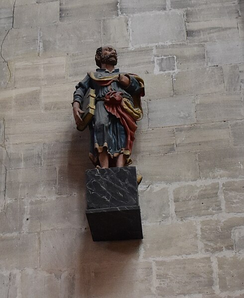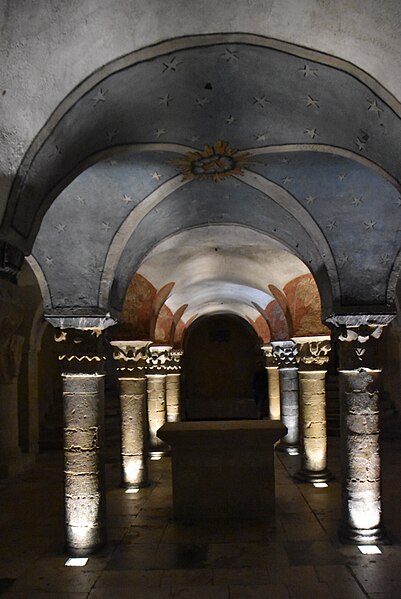 La crypte romane, redécouverte au XVe siècle, conserve des chapiteaux sculptés et des fresques d’anges musiciens, et le Trésor expose des pièces médiévales et modernes remarquables, parmi lesquelles la chasuble de saint Regnobert et un coffret d’ivoire du XIe siècle. Un sarcophage médiéval découvert lors d’une opération d’accessibilité en 2018 est aujourd’hui conservé au rez‑de‑chaussée du Trésor. La cathédrale possède deux orgues principaux — un orgue de tribune à trois claviers et pédalier, d’environ 2 550 tuyaux, et un orgue de chœur plus modeste d’environ 170 tuyaux — ainsi qu’un ensemble de cloches récemment complété par deux nouvelles cloches installées en 2014 et dédiées à la mémoire d’Edith Stein et de sa sœur, œuvres décorées par Yannec Tomada et fondues dans des ateliers français. L’ensemble est protégé au titre des monuments historiques depuis la liste de 1862. Le palais épiscopal et les bâtiments alentours forment l’ensemble du groupe épiscopal ; le palais originel fut confisqué à la Révolution et affecté à d’autres usages avant que la résidence de l’évêque ne soit déplacée.