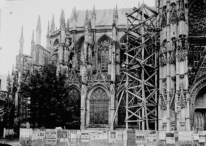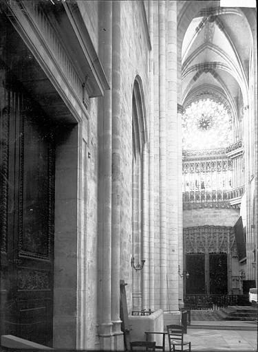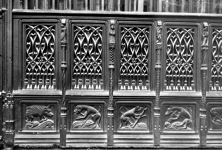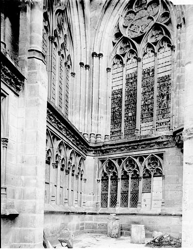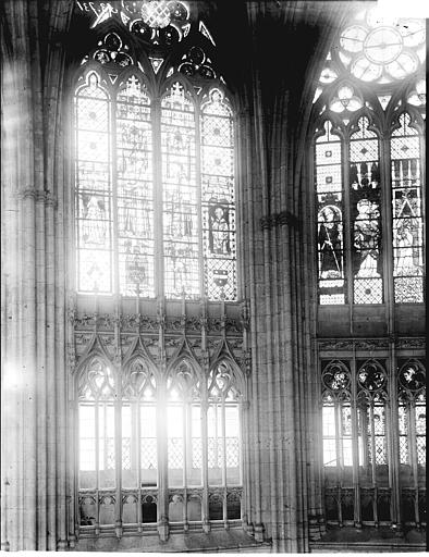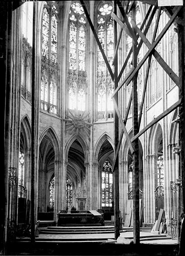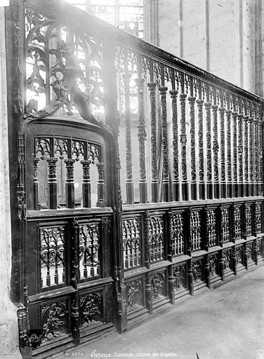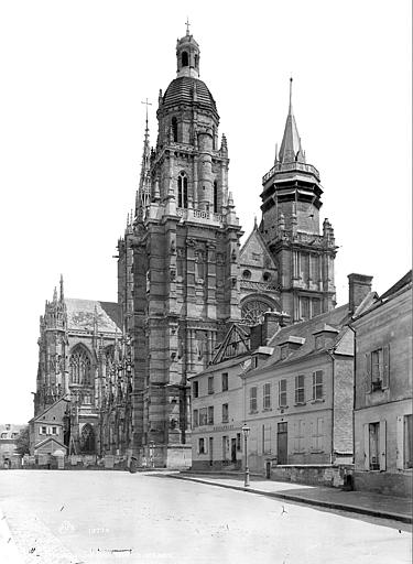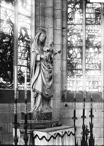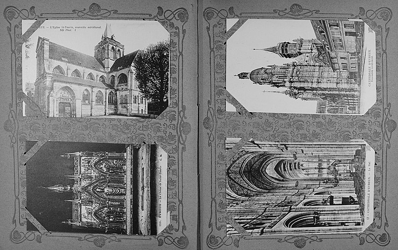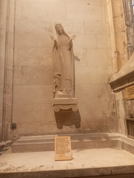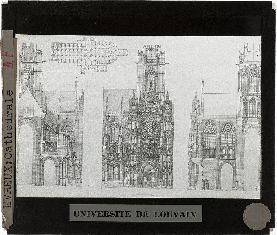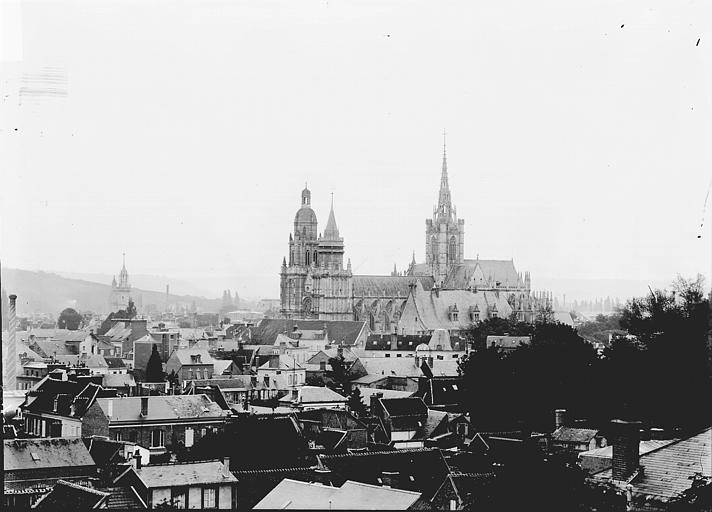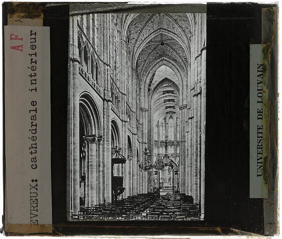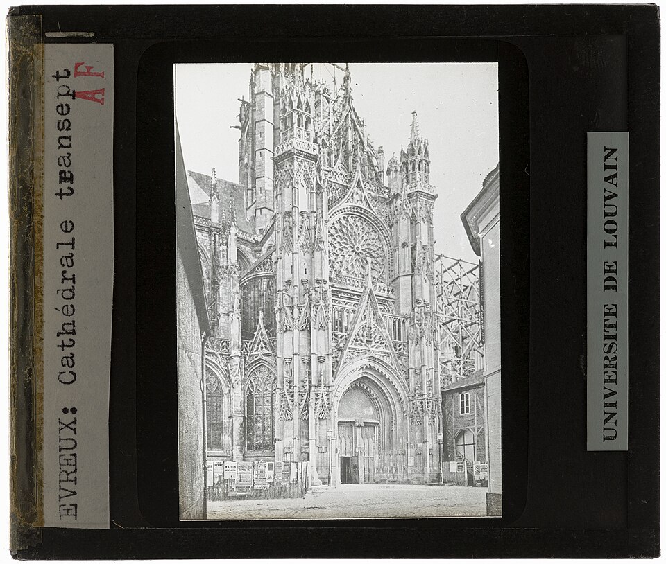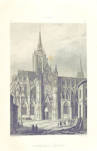 La cathédrale Notre‑Dame d’Évreux, siège du diocèse de l’Eure, est un édifice majeur de la ville, classé monument historique depuis 1862. Des vestiges et découvertes archéologiques attestent d’une occupation religieuse ancienne sur le site, notamment des éléments gallo‑romains et une pierre sculptée du VIIe siècle pouvant être une fenestella confessionnis. Une première cathédrale romane, achevée et consacrée à la Vierge vers la fin du XIe siècle, fut détruite lors d’un incendie en 1119 puis reconstruite au siècle suivant ; des fouilles ont révélé des restes d’abside et d’autres aménagements de cette phase. L’édifice a de nouveau souffert d’incendies aux XIIe et XIVe siècles, puis a été reconstruit progressivement à partir du début du XIIIe siècle, donnant à la cathédrale sa physionomie gothique actuelle, mêlant gothique rayonnant, gothique flamboyant et éléments de la Seconde Renaissance française. Les grandes arcades romanes de la nef ont été conservées et intégrées au nouvel ensemble ; le triforium et les fenêtres hautes ont été remaniés dans le style rayonnant, tandis que le chevet a été conçu avec déambulatoire et chapelles rayonnantes. La façade du transept nord, réalisée au XVIe siècle, illustre le gothique flamboyant, et la façade occidentale sous la grande rosace comporte un portail de la Renaissance française. Au début du XVIIe siècle, des travaux d’achèvement ont harmonisé l’ensemble en mêlant habillage classique et principes d’architecture de la Renaissance. Pendant la Révolution, le décor du tympan disparut et les statues du portail nord furent brisées ; l’édifice faillit être vendu pour démolition. Restaurée au XIXe siècle sous la direction de Viollet‑le‑Duc et l’architecte diocésain Denis Darcy, la cathédrale fut fortement touchée par les bombardements du 9 juin 1940 et a bénéficié de travaux de réfection achevés en 1973. L’édifice est construit entièrement en craie, issue de deux gisements locaux et du val de Seine, la « pierre de Vernon », aux qualités différentes. La cathédrale conserve un ensemble important de vitraux couvrant les XIIIe au XVIIe siècles ; ils furent démontés pendant la Seconde Guerre mondiale, restaurés à partir de 1953 par Jean‑Jacques Gruber et partiellement détruits par une grêle en 1983. La tour nord abrite les cinq cloches fondues en 1967 par la fonderie Cornille‑Havard, dont le bourdon inauguré le 25 mars 1968, tandis que la tour sud, anciennement coiffée d’un clocher octogonal, ne fut pas reconstruite après 1940. La tour‑lanterne à la croisée du transept, surmontée d’une flèche, domine l’édifice. La nef, rehaussée sur ses grandes arcades, contraste avec le chœur gothique rayonnant commencé vers 1260 et achevé avant 1310 ; le chœur conserve des stalles réalisées en 1377 grâce à une donation. Les chapelles latérales se développent le long des collatéraux nord et sud et les treize chapelles rayonnantes sont fermées par des clôtures de bois sculpté datées du XVe au XVIIe siècle ; plusieurs chapelles possèdent des clôtures de la Renaissance ou du gothique flamboyant et abritent œuvres et mobiliers anciens. La chapelle absidiale dite de la Mère de Dieu, élevée au XVe siècle par l’évêque Jean de La Balue, conserve une Vierge à l’Enfant en pierre polychrome et un tableau de Gian Antonio Guardi provenant d’une collégiale voisine. L’orgue a une histoire ancienne — don initial en 1549, restauration au XVIIIe siècle par Jean‑Baptiste Nicolas Lefebvre, destruction partielle puis totale au XXe siècle — et l’instrument actuel, construit en 2006 par la maison Quoirin, compte 53 jeux, quatre claviers de 56 notes, un pédalier de 32 notes et environ 4 000 tuyaux ; il a été inauguré lors d’une série de concerts donnés par des organistes reconnus. La mise en lumière et l’organisation de l’éclairage intérieur prolongent la volonté médiévale d’en faire « une cathédrale de lumière », en ménageant sobriété et sérénité. L’ancien évêché, devenu musée d’Évreux, ainsi que la cathédrale bénéficient de protections au titre des monuments historiques.
