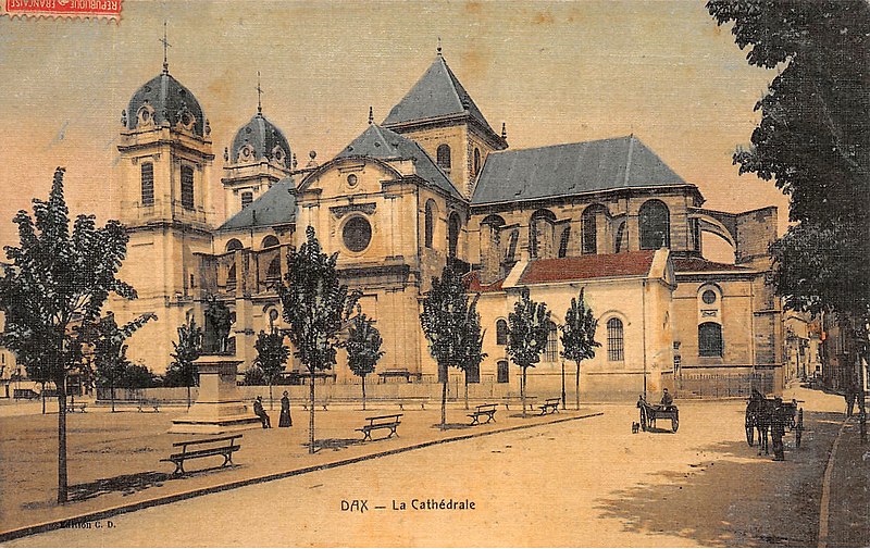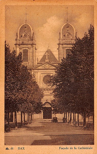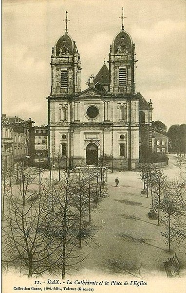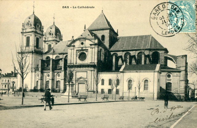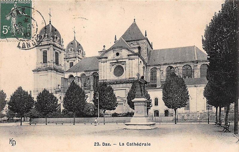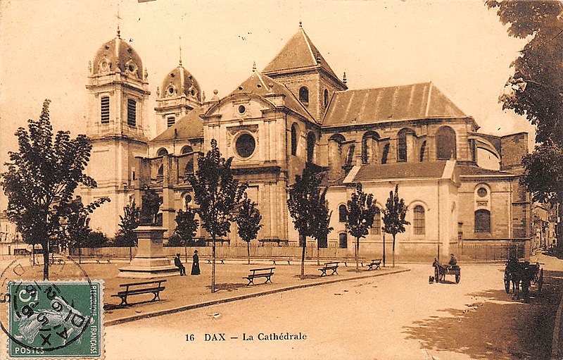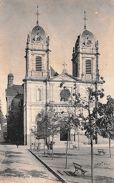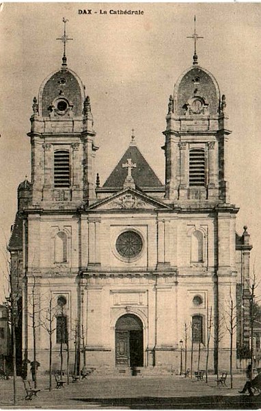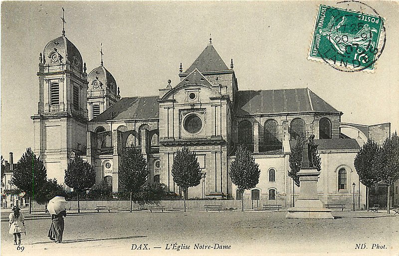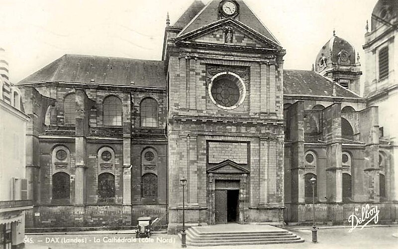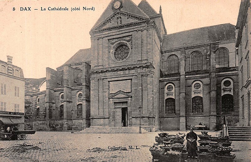 La cathédrale Notre-Dame, dite aussi Sainte‑Marie, de Dax est située dans les Landes, en Nouvelle‑Aquitaine ; elle est classée au titre des monuments historiques par arrêté du 16 septembre 1946. À la fin du XIIIe siècle, l'évêché fit ériger une cathédrale gothique sur un ancien sanctuaire roman, mais cet édifice s'effondra en 1646 après l'écroulement de son clocher, ce qui entraîna la décision de reconstruire la cathédrale. Les travaux de reconstruction se déroulèrent de 1656 à 1719, selon des plans qui auraient été réalisés par Vauban, et l'ensemble ne fut complètement achevé qu'en 1894. Du bâtiment médiéval ne subsiste que le Portail des Apôtres, initialement central sur la façade occidentale, déplacé au XIXe siècle dans le bras nord du transept et classé en 1884.