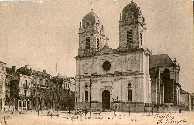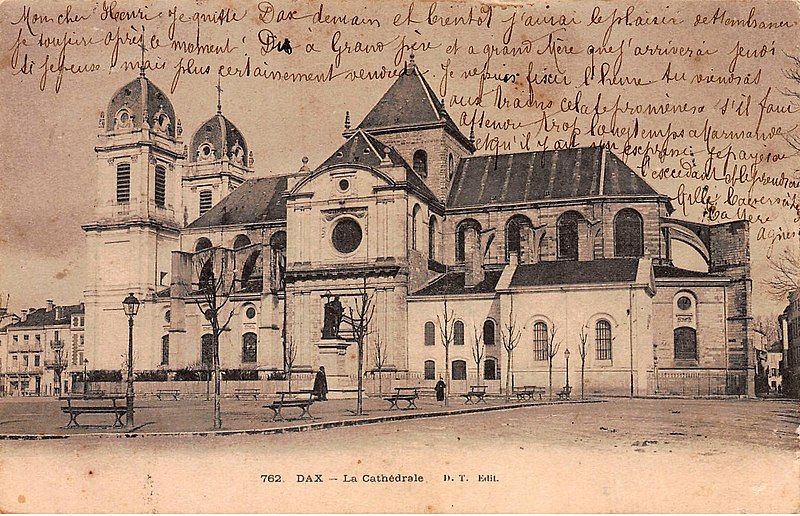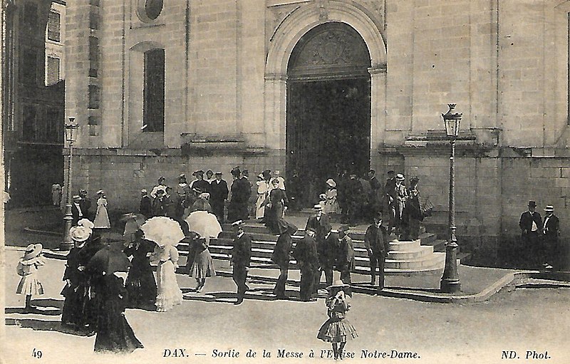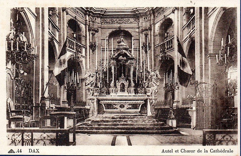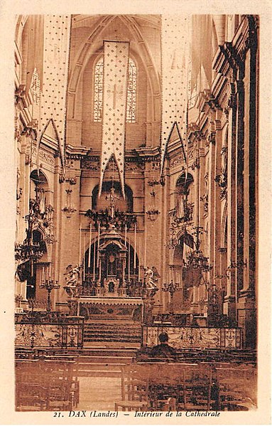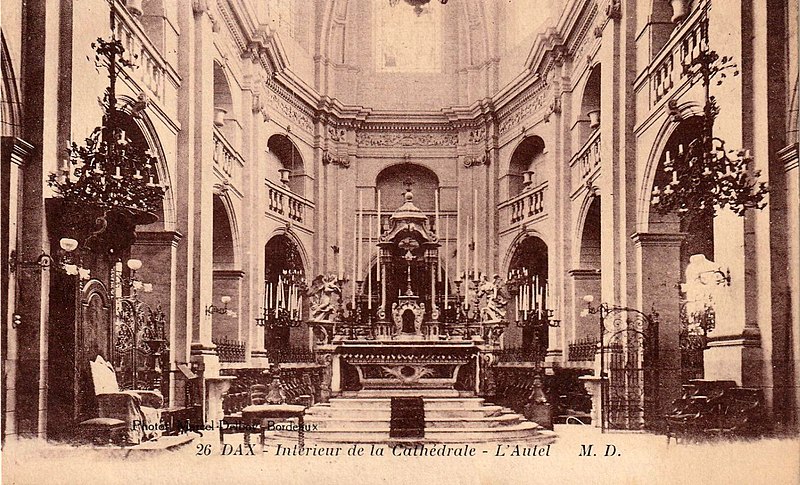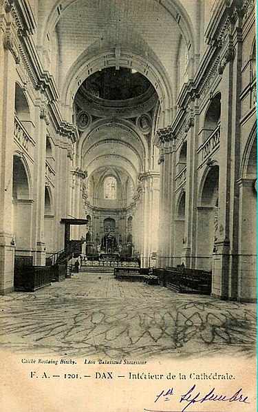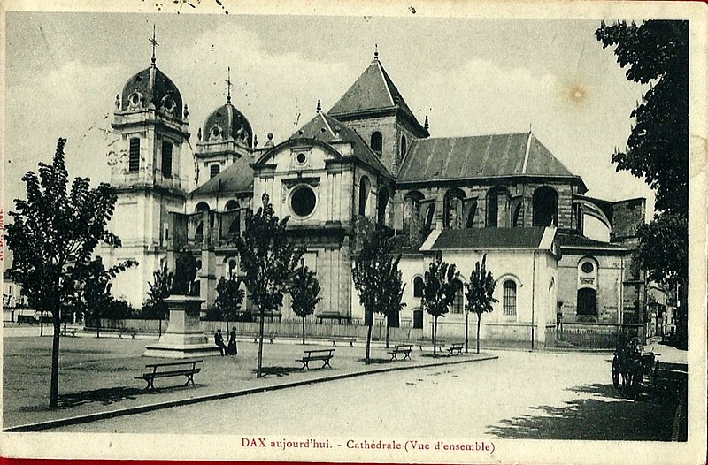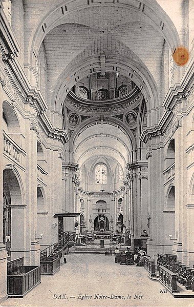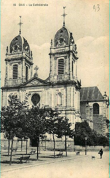 La cathédrale Notre-Dame, dite aussi Sainte‑Marie, de Dax est située dans les Landes, en Nouvelle‑Aquitaine ; elle est classée au titre des monuments historiques par arrêté du 16 septembre 1946. À la fin du XIIIe siècle, l'évêché fit ériger une cathédrale gothique sur un ancien sanctuaire roman, mais cet édifice s'effondra en 1646 après l'écroulement de son clocher, ce qui entraîna la décision de reconstruire la cathédrale. Les travaux de reconstruction se déroulèrent de 1656 à 1719, selon des plans qui auraient été réalisés par Vauban, et l'ensemble ne fut complètement achevé qu'en 1894. Du bâtiment médiéval ne subsiste que le Portail des Apôtres, initialement central sur la façade occidentale, déplacé au XIXe siècle dans le bras nord du transept et classé en 1884.