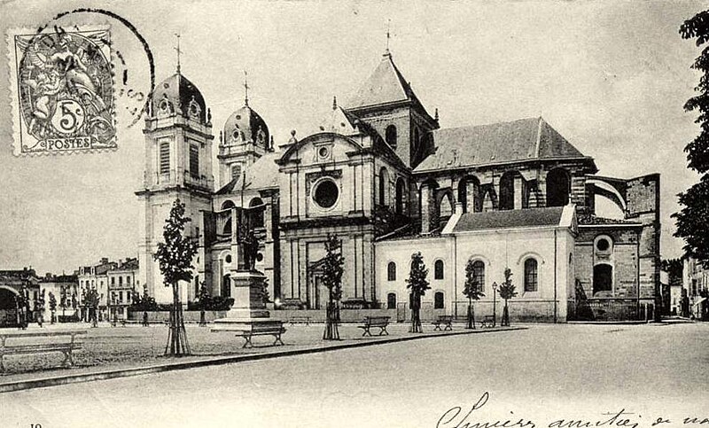 La documentation visuelle rassemble des vues de la façade ouest et des façades latérales, des détails de la porte monumentale, des vues intérieures vers l'orgue et le narthex, l'intérieur avec le chœur, l'autel et l'abside, le Portail des Apôtres, la coupole et sa peinture, ainsi que la chapelle Notre‑Dame. Les principales études et notices sur la cathédrale incluent notamment les travaux de Jean‑Félix Pédegert, Jacques Gardelles et Agnès Chauvin.