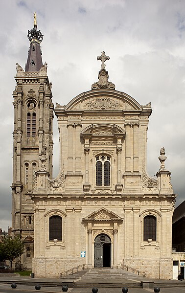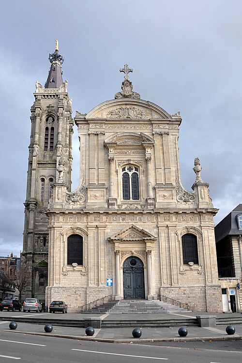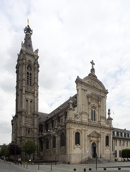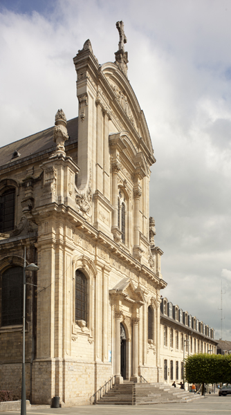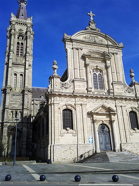 L'église fut remaniée à plusieurs reprises : réparée après un incendie en 1145, transformée au XIIIe siècle en plan cruciforme, puis rebâtie et agrandie en 1498 par l'abbé Guillaume Courtois. Incendiée en 1553 par les troupes du roi de France Henri II, elle ne fut complètement reconstruite qu'en 1602 et consacrée par l'archevêque Guillaume de Berghes. À la fin du XVIIe siècle l'église fut de nouveau reconstruite : en 1695 l'abbé Louis de Marbaix fit rebâtir le chœur, le projet s'étendit à la nef et l'on conserva seulement le clocher de 1542 ; les travaux, dirigés par l'architecte Anselme Estienne, s'achevèrent en 1703. La nouvelle église, représentative d'un style propre au règne de Louis XIV, mêle des traits baroques et classiques.