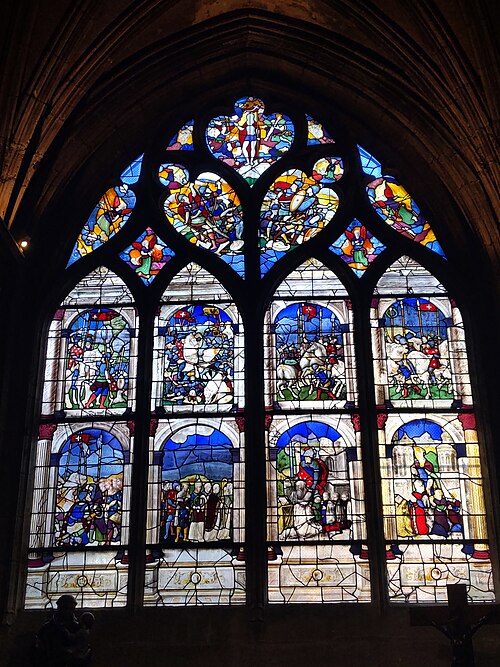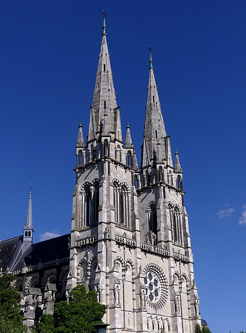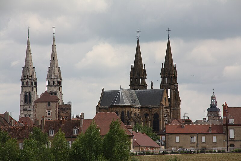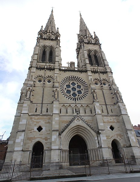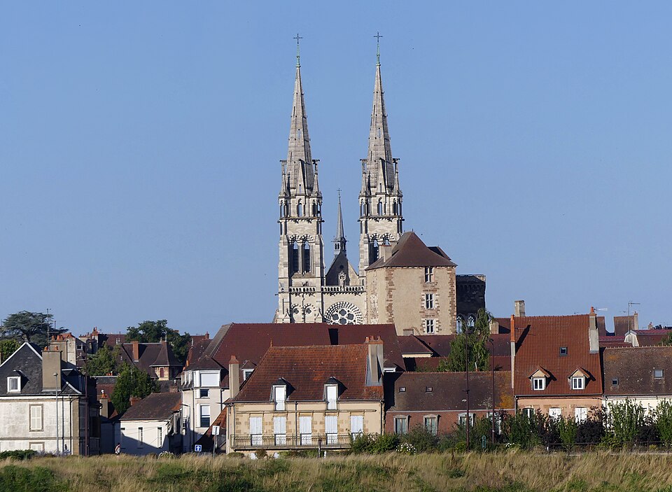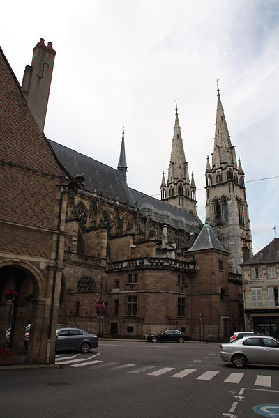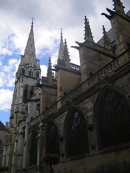 La cathédrale Notre‑Dame‑de‑l'Annonciation de Moulins, dans l'Allier, est le siège épiscopal du diocèse de Moulins. Elle succède à une chapelle du Xe siècle, d'abord dédiée à saint Pierre, qui évolua en collégiale à la fin du Moyen Âge. La partie la plus ancienne de l'édifice actuel est le chœur, édifié en gothique flamboyant ; sa première pierre fut posée en 1468 par Agnès de Bourgogne. Le chapitre de chanoines, fondé par Louis II de Bourbon, fut installé dans la chapelle dédiée à l'Annonciation dès 1386, antérieur à la construction de la collégiale. Lors de la création du diocèse, la collégiale fut érigée en cathédrale en 1823 et, jugée trop exiguë, fit l'objet d'un vaste agrandissement voulu par les évêques Antoine de Pons de La Grange puis Pierre Simon de Dreux‑Brézé. Au XIXe siècle, les travaux menés dans un esprit néogothique, sous l'influence de Viollet‑le‑Duc et lancés par Jean‑Baptiste‑Antoine Lassus puis poursuivis par Eugène Millet et Paul Selmersheim, doublèrent la surface de la nef, ajoutèrent deux collatéraux et un massif occidental coiffé de deux flèches en pierre calcaire culminant à plus de quatre‑vingts mètres ; les voûtes de la nef atteignent environ vingt‑cinq mètres de hauteur. Le chœur gothique flamboyant se distingue par ses proportions élancées, ses larges baies à remplages et un déambulatoire transformé en galerie rectangulaire, et il conserve une tourelle d'escalier du XIVe siècle. Plusieurs éléments anciens furent dispersés ou détruits à la fin du XVIIIe siècle, mais trois bas‑reliefs du jubé ont été réutilisés à l'autel du Saint‑Sacrement. Les vitraux, pour la plupart datés des XVe et XVIe siècles, forment une parure prestigieuse : ils figurent donateurs, scènes hagiographiques (sainte Catherine, sainte Barbe, Marie‑Madeleine), épisodes bibliques et l'arbre de Jessé, et témoignent de la maîtrise des verriers de la fin du Moyen Âge et de la Renaissance. Le trésor conserve des œuvres remarquables, dont le célèbre triptyque du Maître de Moulins, aujourd'hui attribué à Jean Hey, une Vierge noire du XIe siècle, le groupe gothique flamboyant de la « déploration du Christ », une statue de Jeanne d'Arc en prière, un christ reliquaire en ivoire du XVIIe siècle et des triptyques attribués à Aubery et à Joos van Cleve. Le triptyque du Maître de Moulins représente la Vierge en gloire entourée d'anges, les volets latéraux montrant les donateurs duc et duchesse présentés par leurs saints protecteurs. La Vierge noire, statue romane remaniée au XVe siècle, a longtemps fait l'objet d'une dévotion locale et fut couronnée en 1910. La cathédrale abrite également des peintures et un mobilier d'époques variées, ainsi que des chapelles ornées de vitraux aux cycles narratifs riches. Les orgues comptent parmi les éléments notables : l'orgue de tribune, construit par Joseph Merklin dans un buffet dessiné par Eugène Millet, est un témoin précieux de la facture symphonique d'église et a été restauré et classé au titre des monuments historiques, tandis que l'orgue de chœur, issu de la manufacture Abbey et acquis à la Schola Cantorum de Paris, fut installé dans les années 1930. Sous le maître‑autel se trouve un caveau funéraire lié à la maison de Bourbon et la « déploration du Christ » est aujourd'hui placée dans une chapelle latérale. La cathédrale fut consacrée en 1923, élevée au titre de basilique mineure en 1949 et protégée au titre des monuments historiques depuis 1875. D'origine médiévale, le chapitre de Notre‑Dame a conservé des constitutions et des usages propres, qui furent réorganisés au XIXe siècle et adaptés aux évolutions juridiques et ecclésiastiques ultérieures. Monument majeur du Bourbonnais, Notre‑Dame de Moulins réunit ainsi un chœur gothique, des ajouts néogothiques, des vitraux anciens, des peintures et un mobilier remarquable.