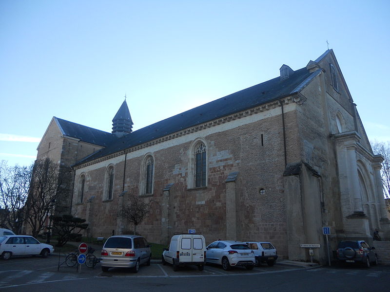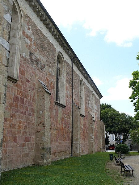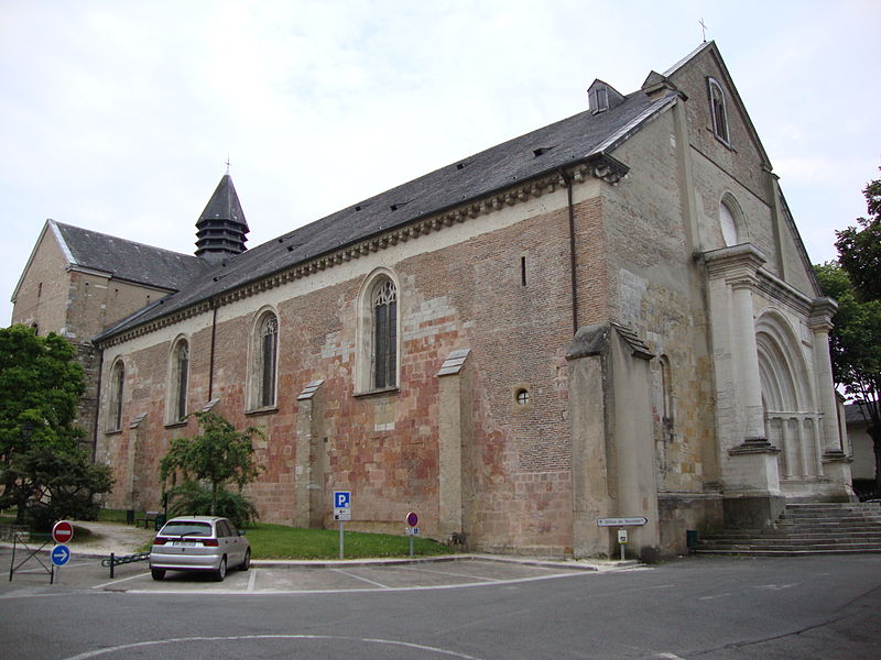 La cathédrale Notre-Dame-de-l'Assomption de Lescar, ancienne cathédrale et aujourd'hui co-cathédrale du diocèse de Bayonne, Lescar et Oloron, est située à Lescar (Pyrénées-Atlantiques) et classée monument historique en 1840. Son origine remonte à un monastère de la fin du Xe siècle, installé après la destruction par les Normands de la cathédrale de la Basse-Ville et le recentrage de la cité sur la colline. Un baptistère dédié à saint Jean‑Baptiste exista sur le site, remplacé par une chapelle et un monastère sous le vocable de Sainte‑Marie fondés par un soldat repenti nommé « Loup‑Fort ». L'évêché de Lescar succéda à celui de Beneharnum en 980, la chapelle fut consacrée cathédrale en 1062 et l'édifice actuel fut édifié par l'évêque Guy de Lons en 1120, puis consacré en 1145. Au XIIe siècle les moines adoptèrent la règle de saint Augustin et formèrent un chapitre régulier. À la fin du XVe siècle la cathédrale devint la nécropole de la maison d'Albret et reçut plusieurs souverains de Navarre. Durant les guerres de Religion la cathédrale subit de graves atteintes : Jeanne d'Albret fit supprimer images et autels, le mobilier fut saisi, puis l'édifice fut pillé par les troupes de Gabriel de Montgomery le 21 août 1569. La châsse de saint Galactoire fut détruite, des tombeaux profanés, les biens du chapitre saisis et vendus entre 1570 et 1573, et les chanoines durent se retirer en partie à Louvigny en Chalosse jusqu'en 1610. Des réparations eurent lieu en 1572, mais l'entretien insuffisant entraîna l'effondrement d'une partie de la voûte et sans doute d'un clocher autour de 1599‑1600. Le 18 octobre 1620 le roi Louis XIII assista à une messe dans la cathédrale lors du rattachement du Béarn à la couronne de France. Sous l'épiscopat de Jean‑Henri de Salette, entre 1628 et 1632, la voûte fut reconstruite et le chœur restauré, tandis qu'au XVIIIe siècle les ressources du diocèse ne permirent pas de grands travaux. La Révolution de 1791 supprima l'évêché ; les archives disparurent et le trésor fut en grande partie fondu, puis en 1793 l'édifice fut désaffecté et transformé en Temple de la Raison, ce qui endommagea le mobilier, les autels et les sépultures. Une importante campagne de restauration débuta après le classement en 1840 et porta sur les peintures des absidioles, certains chapiteaux et modillons, la mosaïque romane et la pose d'un sol en carrelage de Maubeuge. En 1886 l'atelier de Jean‑Dominique Facchina restaura la mosaïque romane dite du chasseur mauresque, et depuis 2006 une nouvelle campagne a repris la conservation de la mosaïque du XIIe siècle et de nombreuses peintures, notamment le Couronnement de la Vierge. L'édifice est construit en grès de Lasseube ; son chevet conserve une architecture romane, la nef est voûtée en berceau plein cintre et les bas‑côtés en berceaux transversaux. La cathédrale mesure environ 61 mètres de longueur, 22,5 mètres de largeur et 15 mètres de hauteur. Les chapiteaux romans, partiellement remaniés aux XVIIe et XVIIIe siècles, représentent des scènes bibliques et hagiographiques telles que le cycle de Daniel, la naissance du Christ, le sacrifice d'Abraham, ainsi que des figures comme le Christ entouré des évangélistes, l'adoration des mages, Adam et Ève, Caïn et Abel, la décollation de saint Jean‑Baptiste et le Christ en majesté. Le sol du chœur conserve une mosaïque du XIIe siècle figurant une scène de chasse mauresque avec un chasseur unijambiste, découverte sous un carrelage en 1838 et restaurée en 1884 ; cette mosaïque est liée à Guy de Lons et aux prothèses espagnoles évoquées par la tradition. Les fresques du milieu du XVIIe siècle ont été récemment remises en valeur. Des stalles du XVIe siècle, déplacées dans la cathédrale en 1836 puis en 1859, représentent le Christ, les douze apôtres, les quatre évangélistes et plusieurs saints populaires du Béarn. L'orgue romantique construit par Georges Wenner en 1869 est classé aux monuments historiques depuis juin 1972 ; il comprend trois claviers de 54 notes et un pédalier de 30 notes pour 32 jeux. Les fouilles de 1928‑1929 permirent de retrouver le caveau royal et des restes des souverains inhumés depuis la fin du XVe siècle, qui furent identifiés puis replacés dans des cercueils en bois et réinhumés. Les bâtiments claustraux formaient une enceinte affectée au chapitre, limitée au nord par la cathédrale et au sud par les murailles de la ville, avec deux accès nommés porte de l'Ormeau et porte de Baliracq ; ils furent utilisés par l'Académie puis par l'Université protestante du Béarn avant de retrouver leur usage canonial au début du XVIIe siècle. Selon les statuts de 1627, la plupart des corps de bâtiments logeaient les chanoines tandis que d'autres locaux servaient de sacristie, salle capitulaire, bibliothèque et chapelles dédiées à saint Augustin et saint Galactoire ; la plupart de ces constructions, y compris le cloître, disparurent au cours du XVIIIe siècle. Le cloître, accolé à la façade sud de la cathédrale, n'existe plus mais ses fondations, découvertes en 1888 avec dix sarcophages et des monnaies du XIVe siècle, indiquent un préau d'environ 21 par 17 mètres et des galeries de 4 mètres de large ; il servit de lieu de sépulture jusqu'en 1738 et fut déclaré lieu public et profane en 1722 avant de tomber en ruine.