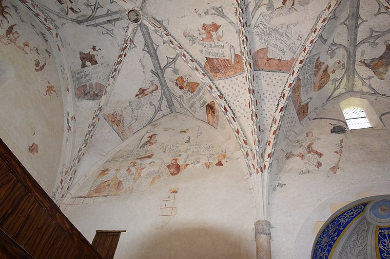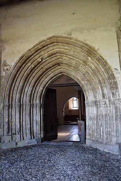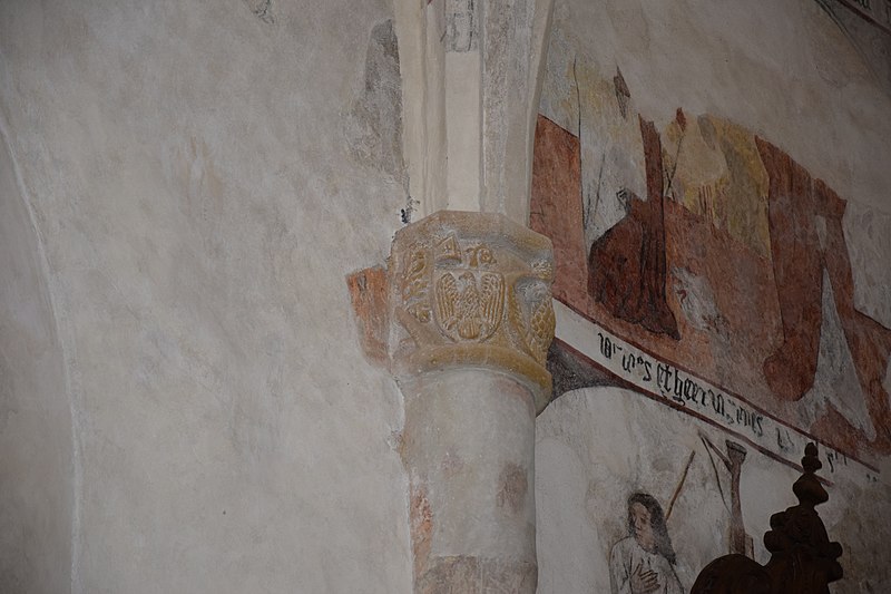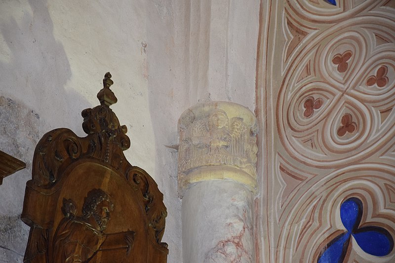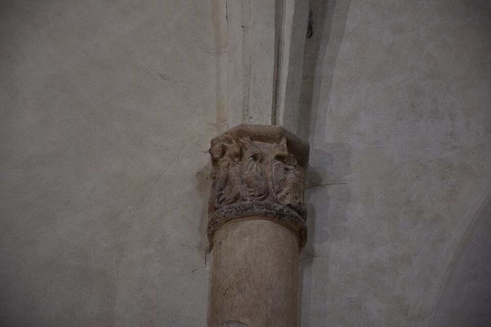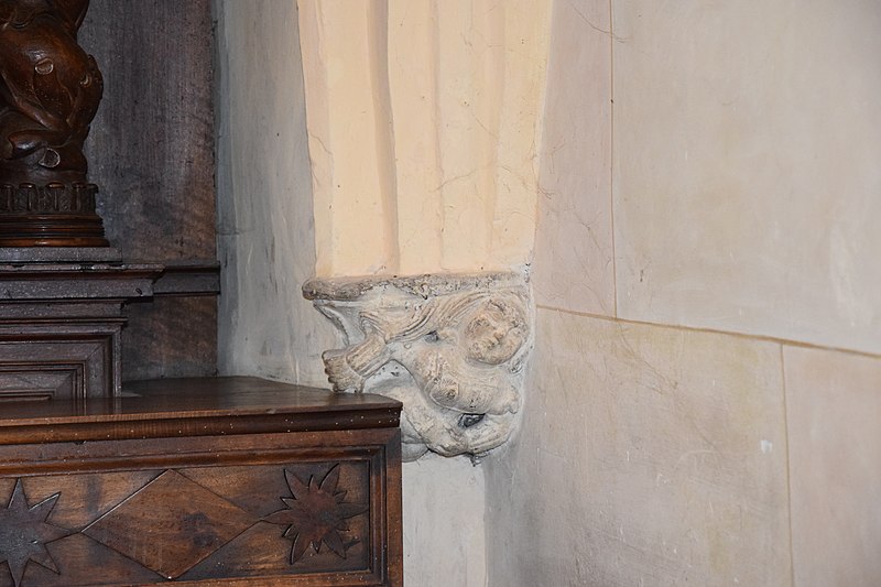 Parmi les éléments remarquables se trouvent un portail du XIVe siècle, le chœur avec ses boiseries, une chapelle dédiée au Sacré‑Cœur et au Cœur Immaculé de Marie, une chaire, un autel, ainsi que des chapiteaux du XIVe siècle dont l’un représente un ange, attribut de saint Matthieu, et des détails de voûte datés de la fin du XVe siècle illustrant les sibylles Rumana et Lanne.