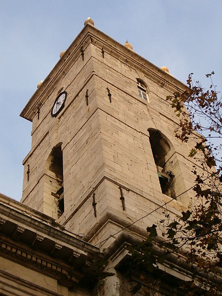 L'église présente des styles architecturaux mêlés : elle comporte trois nefs d'inégale largeur et cinq travées sur une longueur de cinquante mètres, une voûte à croisée d'ogives, une grande nef se terminant par un chevet plat et un chœur de forme rectangulaire. Depuis 1864, les murs portent des fresques de Ludovic Bonifay représentant notamment Moïse, Élie et les douze apôtres. Le sanctuaire abrite un autel plat installé en 1961 qui remplace celui de 1864 dont subsiste un bas-relief ; le chœur est entouré de stalles et la chaire sont l'œuvre de Bernard Sénéquier, ce dernier étant également auteur des stalles et ayant réalisé la chaire en 1829. Les statuettes et le médaillon représentant saint Augustin sont du sculpteur toulonnais Joseph Louis Hubac. Les vitraux, détruits pendant la Seconde Guerre mondiale, ont été remplacés par des œuvres de facture moderne. La tribune porte un grand orgue construit en 1851 par la maison Frédéric Junk de Toulouse et entièrement rénové en 1965. Le clocher renferme quatre cloches datant du XVIe au début du XIXe siècle.
