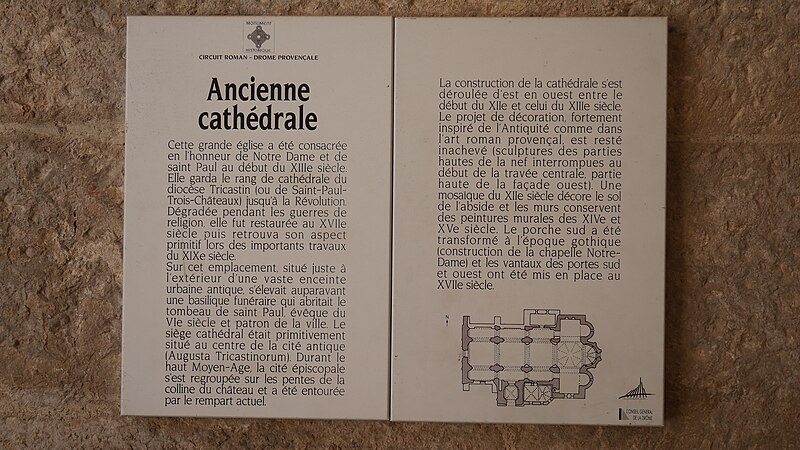 L'ancienne cathédrale Notre‑Dame de Saint‑Paul‑Trois‑Châteaux, aujourd'hui église paroissiale, se situe dans le département de la Drôme, en Auvergne‑Rhône‑Alpes. Construite à partir du milieu du XIIe siècle dans le style roman provençal, elle constitue l'un des exemples régionaux marquants de l'art roman inspiré de l'Antiquité. On suppose qu'un premier groupe épiscopal se trouvait sous l'église Saint‑Jean et que le siège épiscopal fut déplacé à son emplacement actuel à l'époque carolingienne ou au XIe siècle. L'édifice, commencé par le chœur et achevé vers 1220, a été cathédrale jusqu'à la Révolution ; il fait aujourd'hui partie des trois anciennes cathédrales du diocèse de Valence, avec celles de Die et de Valence. La fin de l'union du diocèse de Saint‑Paul à celui d'Orange pourrait expliquer les dimensions particulièrement ambitieuses de la construction au XIIe siècle. Des travaux d'importance ont encore été réalisés au cours du XIVe siècle, et un porche méridional de style gothique a été ajouté au XVe siècle. L'édifice figure sur la première liste des monuments historiques français établie en 1840.