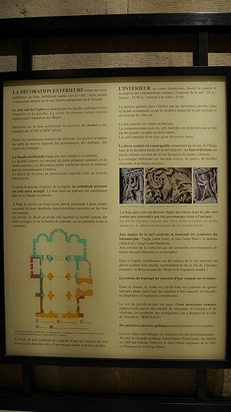 La nef, voûtée en berceau sur doubleaux, atteint une élévation remarquable de 24 mètres et prolonge le vocabulaire décoratif antique avec colonnes engagées, chapiteaux à feuilles d'acanthe, entablement et frises d'oves et de feuilles d'acanthe. La travée précédant le transept présente, à l'étage, un faux triforium : des niches encadrées de pilastres et de colonnettes surmontent une frise très fine. On remarque également un curieux bas‑relief sur le pilier de la chaire. L'orgue, commandé par l'évêque Louis d'Aube de Roquemartine et installé en 1704 par le facteur Charles Boisselin d'Avignon, possède un beau buffet du début du XVIIIe siècle, 16 jeux répartis sur deux claviers manuels et un pédalier, et une traction mécanique ; le buffet et la partie instrumentale sont tous deux inscrits aux Monuments historiques.