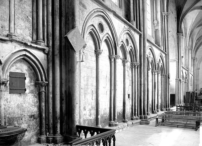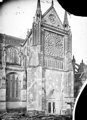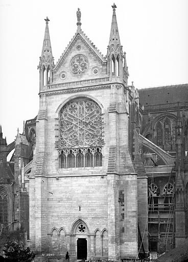 Le transept est asymétrique : le bras sud compte deux travées, le bras nord trois travées avec un bas‑côté reliant le déambulatoire, et son style relève du gothique rayonnant d'inspiration Île‑de‑France.