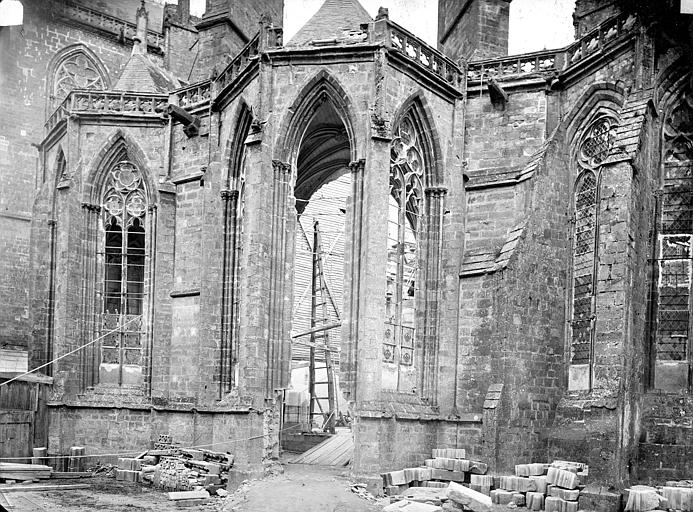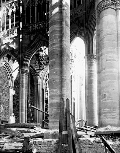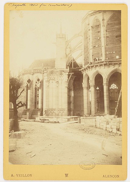 Le transept sud fut restauré en 1856, le bras nord repris en 1869, et l'architecte Petitgrand acheva la reconstruction du chœur après la mort de Ruprich‑Robert.