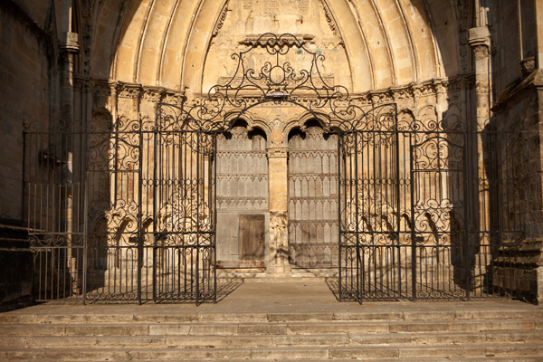 La cathédrale subit d'importants dommages pendant la guerre de Cent Ans (1353, 1375) et lors des guerres de religion; elle fit l'objet d'une réhabilitation et d'une nouvelle consécration en 1494.