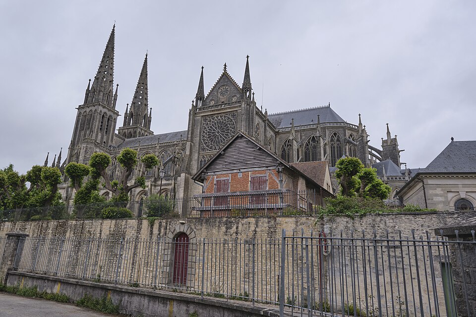 La cathédrale carolingienne fut détruite lors des incursions vikings en 878 ou 910, puis relevée vers 986 par Azon le Vénérable à partir des pierres des fortifications.