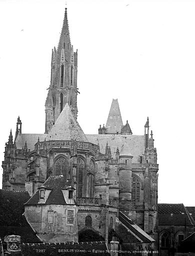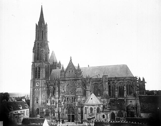 Vers 1152-1153, la construction de la cathédrale débute par le chœur ; les voûtes de la nef sont en place vers 1162-1163 et la nef est raccordée au chœur en 1175. La cathédrale, consacrée le 16 juin 1191 par l'archevêque de Reims Guillaume aux Blanches Mains, était alors dépourvue de transept. Au milieu du XIIIe siècle, sans doute après 1240, on entreprend la percée d’un transept et, vers 1230-1240, la tour sud de la façade occidentale est surmontée d’une flèche de pierre à deux étages. Le bâtiment, de taille modeste pour une cathédrale, s’inscrit parmi les premiers monuments gothiques du pays et conserve des œuvres majeures : le portail du Couronnement de la Vierge (XIIe siècle), la tour sud remarquable (XIIIe siècle) et les façades du transept, chefs-d’œuvre du gothique finissant. Un premier incendie est mentionné en 1417 ; vers 1465 est édifiée, au sud du chœur, la grande chapelle dite du bailli. En 1504 un nouvel incendie, causé par la foudre, détruit la charpente et provoque l’effondrement des voûtes, à l’exception de la première travée. Gilles Hazard, maître d’œuvre, fait alors appel à plusieurs architectes et artisans, parmi lesquels Martin Chambiges, Pierre Nanyer dit de Meaux et Lyenin Jehan, et le roi accorde des subventions en 1507. La reconstruction, commencée en 1506 et poursuivie jusqu’au début du XVIe siècle, rehausse les parties hautes de la cathédrale, double les bas-côtés et enrichit les façades latérales d’un décor flamboyant. Les travaux de la façade sud du transept commencent en 1521 sur des plans de Martin Chambiges et sont exécutés notamment par Michel de Bray ; Pierre Chambiges et Jean Dizieult poursuivent les travaux dans les années 1530 et le portail nord est achevé en 1560 sous la direction de Jean Dizieult. La cathédrale est accolée à une chapelle octogonale d’origine ancienne, datée des Xe–XIe siècles, qui reçoit des peintures murales au XVe siècle. De 1758 à 1765 sont menées d’importantes restaurations ; le chœur est redécoré en 1787. Durant la Révolution, la cathédrale perd son mobilier et sert en 1793 d’entrepôt, puis reste ouverte comme église paroissiale en 1791. L’ancien évêché de Senlis est supprimé par le Concordat de 1801 et son territoire réuni au diocèse de Beauvais. Les têtes des statues-colonnes du portail occidental, mutilées à la Révolution, sont remplacées au milieu du XIXe siècle. La cathédrale est inscrite sur la première liste des monuments historiques en 1840 et l’ancienne bibliothèque est classée en 1929. Des campagnes de restauration récentes ont été menées jusqu’à la fin du XXe siècle, notamment l’achèvement de la restauration intérieure en 1986 et celle de la flèche en 1993. Aujourd’hui Notre-Dame de Senlis, située dans l’Oise, est au centre de la paroisse Saint-Rieul et demeure l’un des exemples remarquables de l’architecture gothique en France.