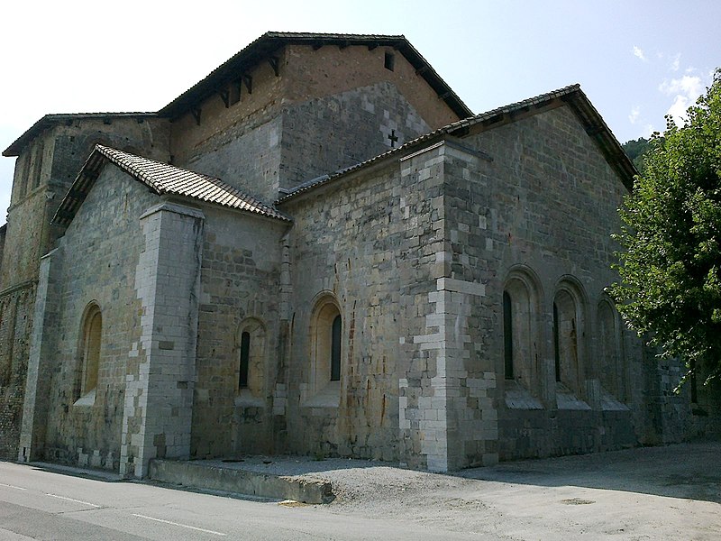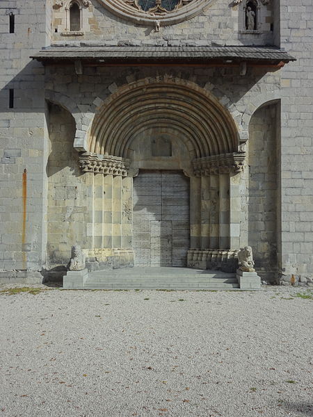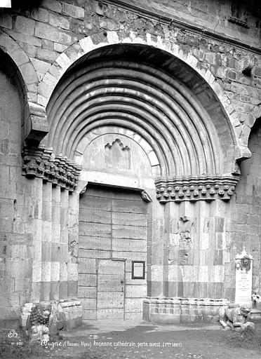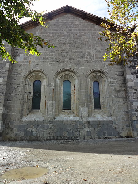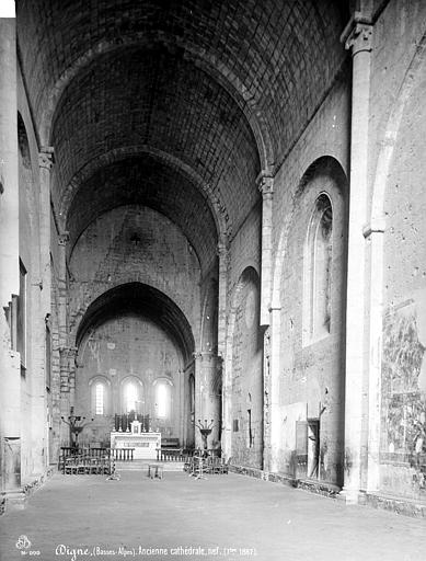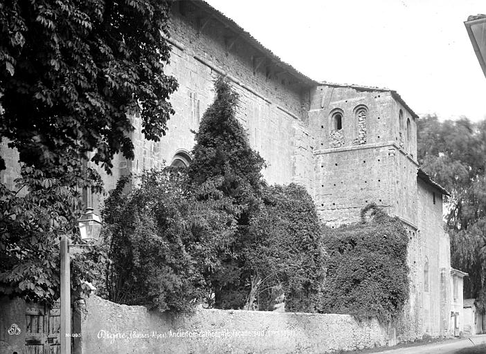 La cathédrale Notre‑Dame‑du‑Bourg, à Digne‑les‑Bains (Alpes‑de‑Haute‑Provence), est l’ancienne cathédrale du diocèse de Digne et est classée au titre des monuments historiques par la liste de 1840. Digne, « Dinia », fut la capitale des Bledontii ou Brodonticiens et devint siège d’un évêché au IVe siècle, mais aucun monument gallo‑romain majeur n’en subsiste. Un document de 780 évoque « in Digna civitate » pour un plaid demandé par Charlemagne, et des textes médiévaux mentionnent la cathédrale et les propriétés du chapitre. Au Moyen Âge la cité se composait de deux pôles, la cité épiscopale et le bourg, ce dernier entrant en décadence à partir du XIVe siècle avec le transfert des foires dans la cité. L’église, parfois attribuée à tort à Charlemagne, présente un style roman : certains éléments, comme le clocher et des fragments de colonnes, ne remontent pas au‑delà du XIe siècle. L’édifice a subi de nombreuses violences et réparations : rénovations au début du XIIIe siècle, ravages lors d’attaques huguenotes aux XVIe siècle et bombardement par Lesdiguières en 1591, après quoi le siège de l’évêché fut transféré à la cathédrale Saint‑Jérôme de Digne. Des vestiges d’états antérieurs sont visibles, notamment sur la façade nord, et un fragment d’inscription latine d’époque romaine a été découvert lors des fouilles. Sur le plan architectural, des parties datées des XIe et XIIe siècles subsistent ; l’édifice actuel, entièrement restauré, est l’un des plus importants exemples romans à nef unique du Sud‑Est de la France. La construction a repris à la fin du XIIe siècle jusqu’au début du XIVe siècle, s’appuyant sur des vestiges d’églises antérieures. D’importantes opérations de restauration accompagnées de fouilles archéologiques, notamment entre 1987 et 1988, ont permis d’enrichir la connaissance historique du monument. Après bénédiction, la nouvelle cloche « Marie‑Vincent » a été installée le 13 septembre 2012, accompagnée de deux autres cloches dans le beffroi. L’intérieur conserve un autel en marbre blanc d’époque mérovingienne et des peintures murales tardo‑médiévales. Ne disposant auparavant d’aucun mobilier ni vitraux anciens, hormis une rosace, la ville a commandé un réaménagement liturgique et des vitraux contemporains à l’artiste canadien David Rabinowitch. Les vitraux conçus par Rabinowitch exploitent le motif des « cives », feuilles de verre circulaires soufflées en plateau et colorées de façons diverses ; le triplet du chœur symbolise la Sainte Trinité (le Père en vert, le Fils en violet ou lavande et l’Esprit‑Saint en jaune), tandis que d’autres baies ponctuent l’édifice en rouge pour le chœur, en bleu pour Notre‑Dame et en blanc pour les fonts baptismaux. Le parcours depuis l’entrée de la nef est jalonné de symboles gravés au sol et rehaussés de métal incrusté : une ammonite intégrée dans un verre, figures géométriques portant des inscriptions hébraïques, grecques ou latines (dont ΙΧΘΥΣ), et polygonales associées à des motifs chrétiens comme l’agneau, le berger, l’alpha et l’oméga. L’autel, l’ambon, la cathèdre, le chandelier pascal, les candélabres, le présentoir des luminis, le tabernacle et la tapisserie constituent le mobilier liturgique contemporain. Des fouilles sporadiques aux XIXe et XXe siècles ont précédé des campagnes systématiques menées entre 1983 et 1994 sous la direction de Gabrielle Démians d’Archimbaud, en liaison avec les travaux de consolidation conduits par l’architecte Francesco Flavigny. Ces investigations ont mis au jour des témoignages funéraires gallo‑romains du Ier siècle, deux mausolées du IIIe siècle, une première église paléochrétienne datée de la fin IVe‑début Ve siècle qui s’est développée en réutilisant les mausolées, ainsi que deux basiliques successives du XIe siècle, la plus récente ayant été détruite par un incendie. Pour valoriser ces découvertes, la ville a aménagé une crypte archéologique sous la cathédrale, dotée d’une muséographie confiée à l’architecte Eric Klein ; cet espace de 870 m2 a été ouvert au public en juillet 2010. Des publications et rapports de fouilles détaillent les recherches et constituent les références principales sur Notre‑Dame‑du‑Bourg.